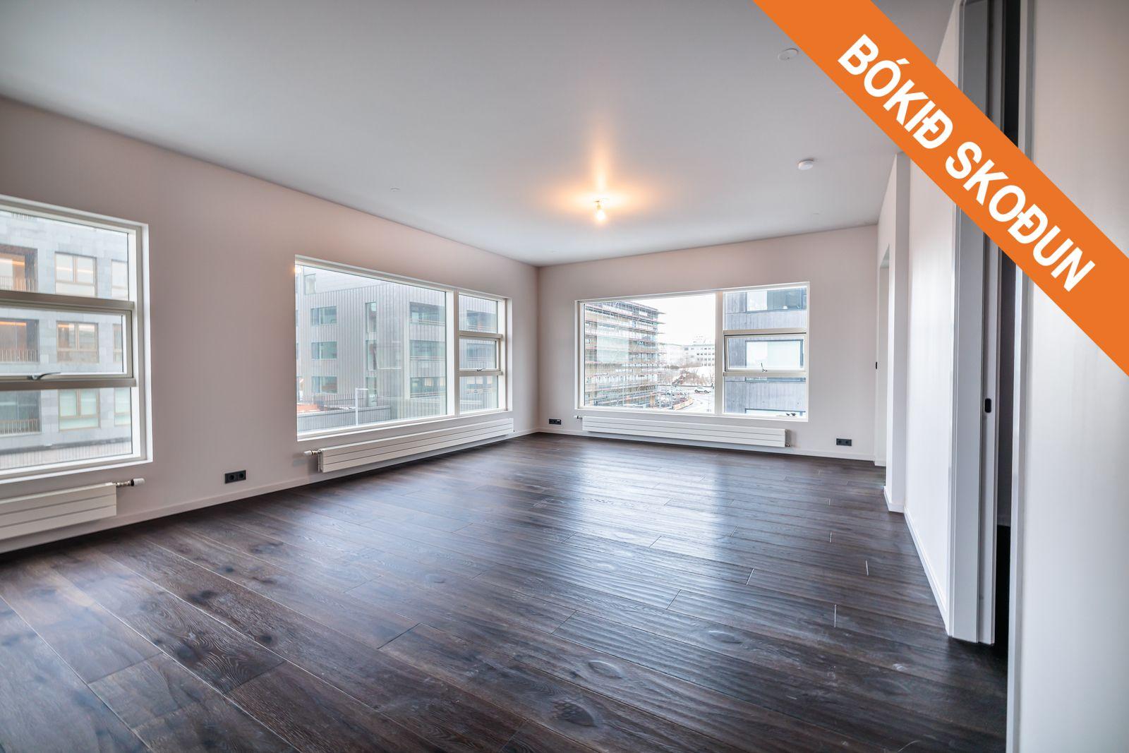 SKEIFAN fasteignasala kynnir í einkasölu glæsilega 3ja herbergja íbúð á þriðju hæð íbúð merkt 305 við Kolagötu 1, Hafnartorgi. Um ræðir fullbúna eign sem aldrei hefur verið búið í. Íbúðin skiptist í anddyri, gesta baðherbergi með sturtu, sér þvottaherbergi með innréttingu, góðu hjónaherbergi með baðherbergi inn af með sturtu, barnaherbergi, eldhúsi og samliggjandi stofu. Frá stofu er gengið út á svalir sem snúa til suð-austurs. Geymsla er staðsett í sameign hússins. Í sameign er einnig sameiginleg hjóla- og vagnageymsla.