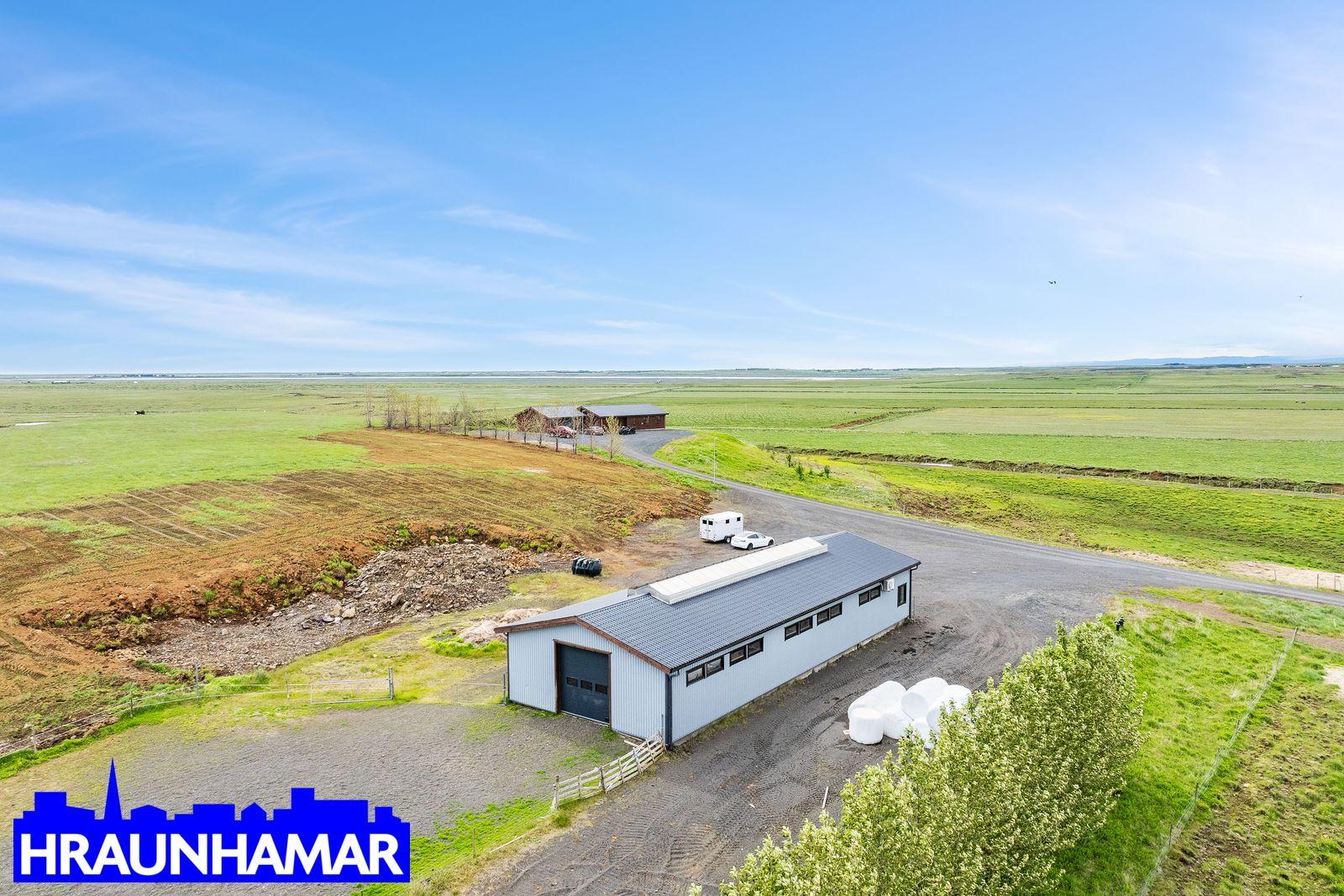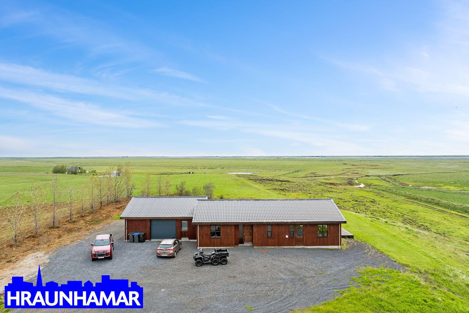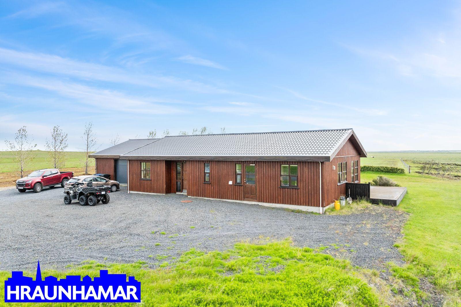 Hraunhamar fasteignasala kynnir: Afar fallega jörð,( nýbýli ) ca 40 hektarar, örstutt frá Selfossi, stendur við Þjórsá á útsýnisstað, (móti Kálfholti og við hliðina á Miðási) Góður húsakostur sem telur þ.e. Mjög fallegt og gott 5-6 herbergja einbýli á einni hæð byggt 2004 samtals 224,3 fm þar af innb. bílskúr 58 fm. (eða íbúðaraðstaða) Hiti í gólfum.