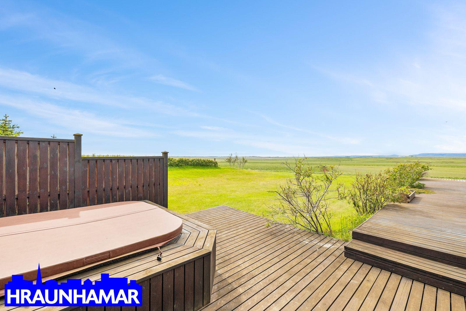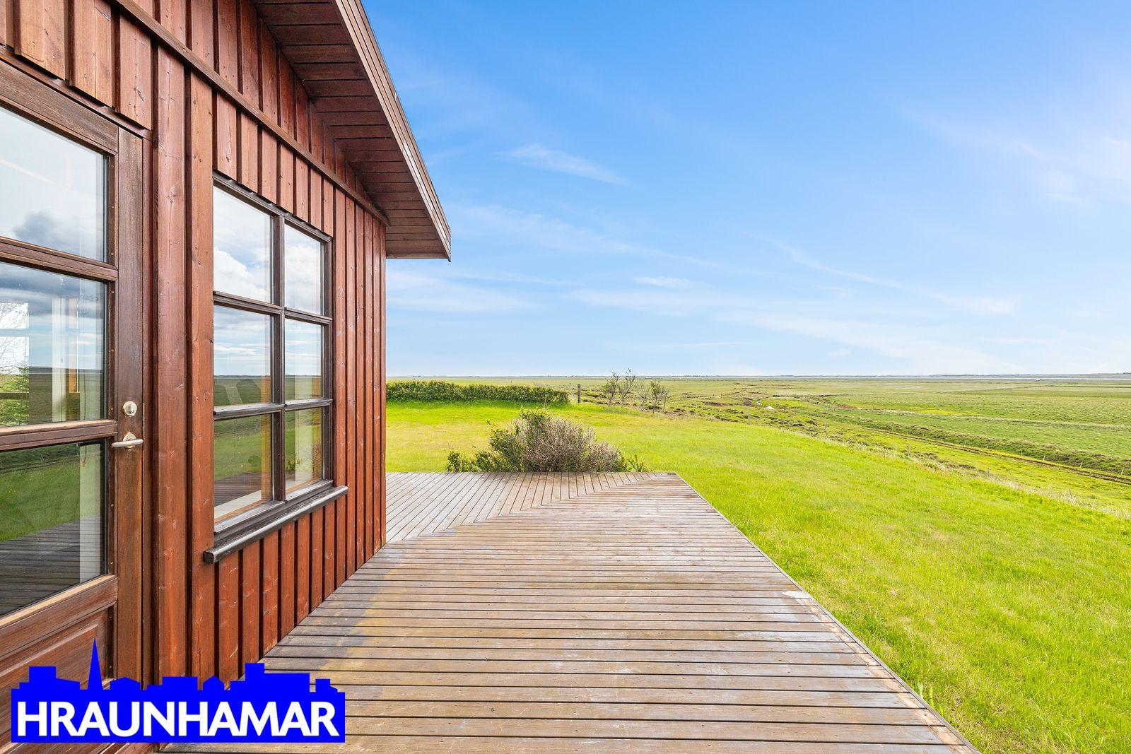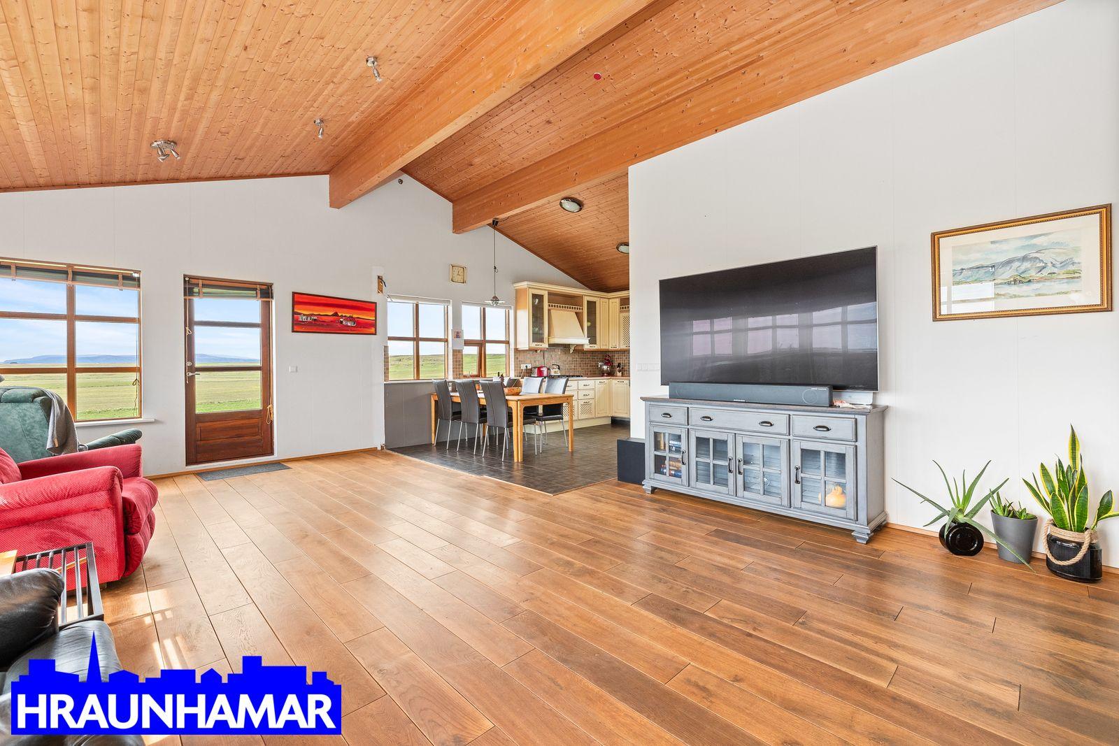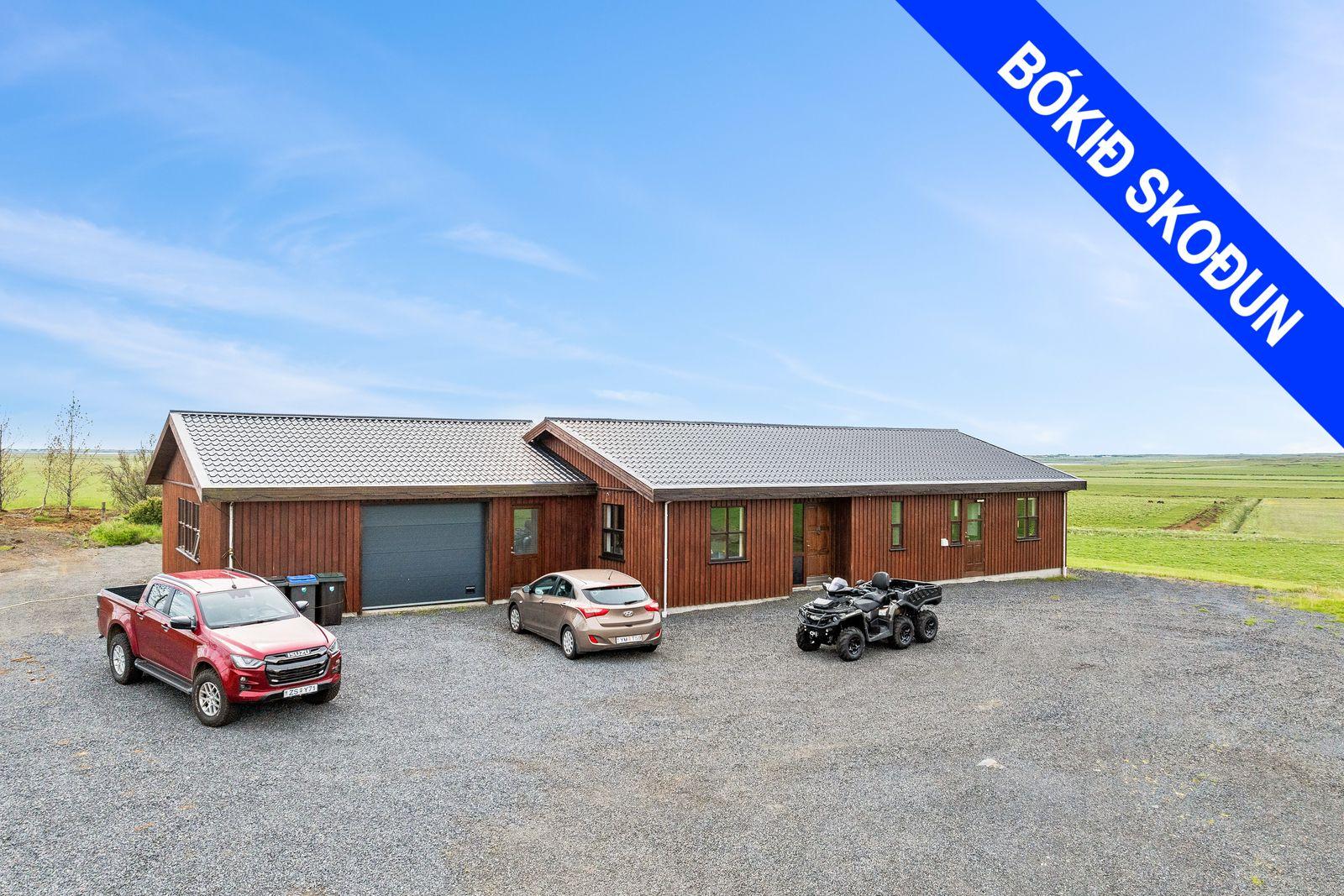 Hraunhamar fasteignasala kynnir: Afar fallega jörð,( nýbýli ) ca 40 hektarar, örstutt frá Selfossi, stendur við Þjórsá á útsýnisstað, (móti Kálfholti og við hliðina á Miðási) Góður húsakostur sem telur þ.e. Mjög fallegt og gott 5-6 herbergja einbýli á einni hæð byggt 2004 samtals 224,3 fm þar af innb. bílskúr 58 fm. (eða íbúðaraðstaða) Hiti í gólfum.