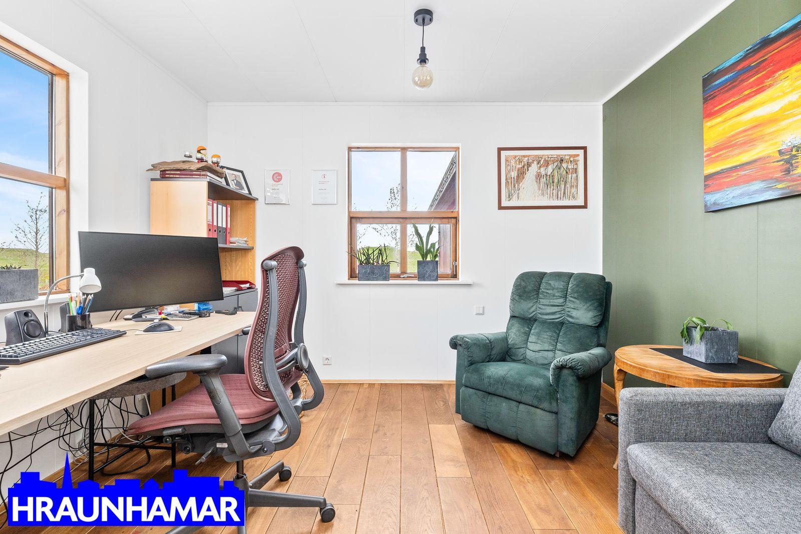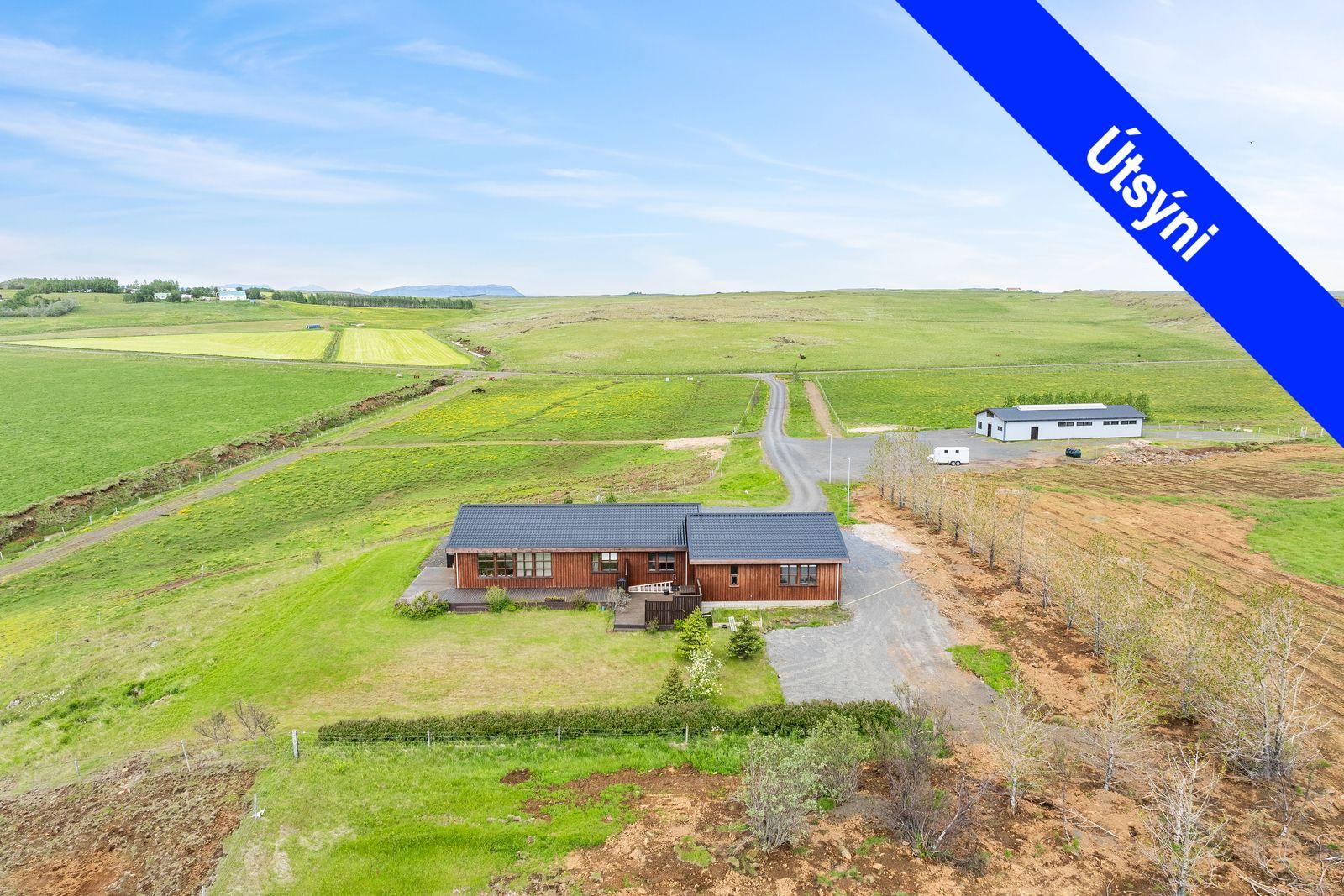 Eignin er á nokkrum fastanúmerum. Samtals ca 36.6 hektarar. Möguleiki er að fá meira land með jörðinni. Glæsilegt útsýni og frábær staðsetning. Eignin skiptist m.a. þannig: Einbýli: forstofa, hol, stofa, borðstofa, eldhús er opið inn í stofu rýmn. Tvö góð barnaherbergi og rúmgott svefnherbergi. Baðherbergi, gestasnyrting og þvottaherbergi ofl.