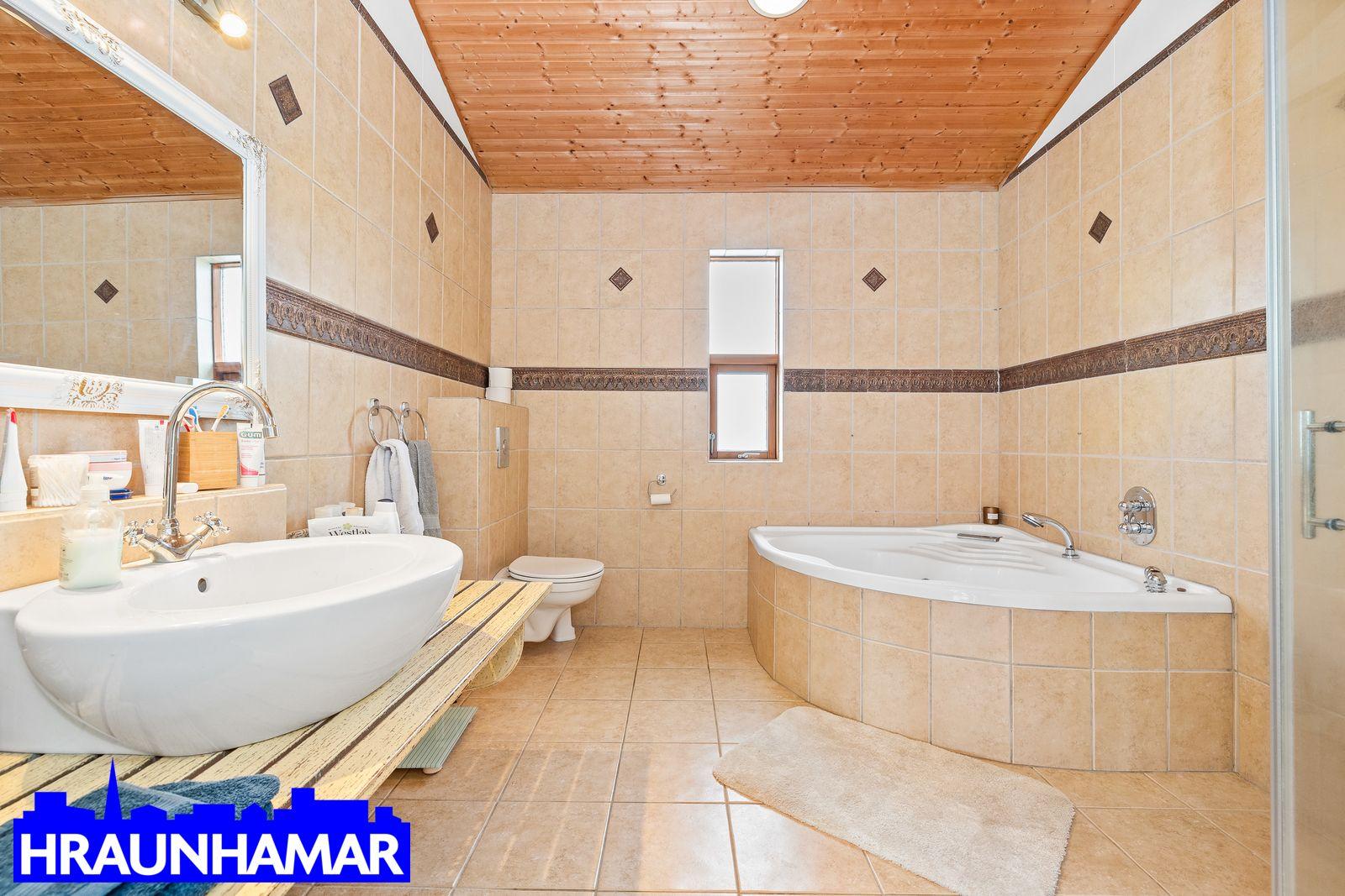 heitur pottur. (hitaveita)Bílskúr (tvöfaldur) rúmgóður er neð epoxý á gólfum. Gott gestaherbergi (unglingaherbergi) inn af bílskúr. (er ekki á teikningu)
