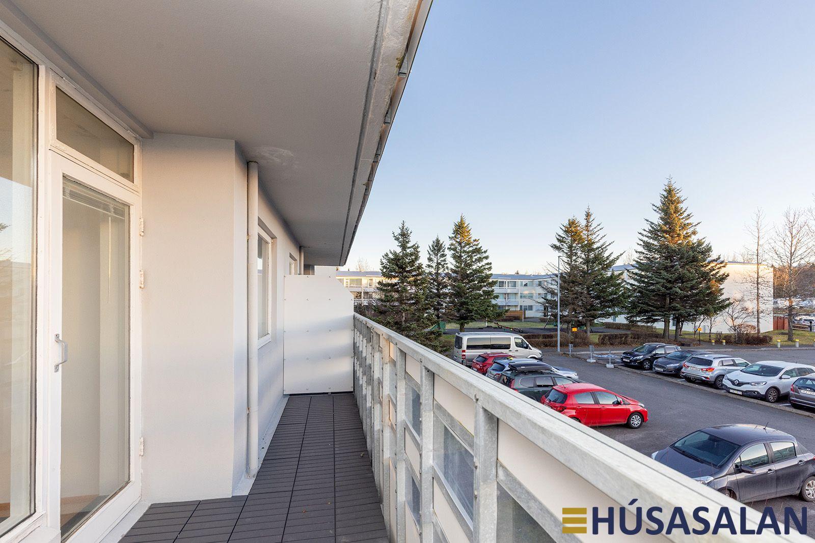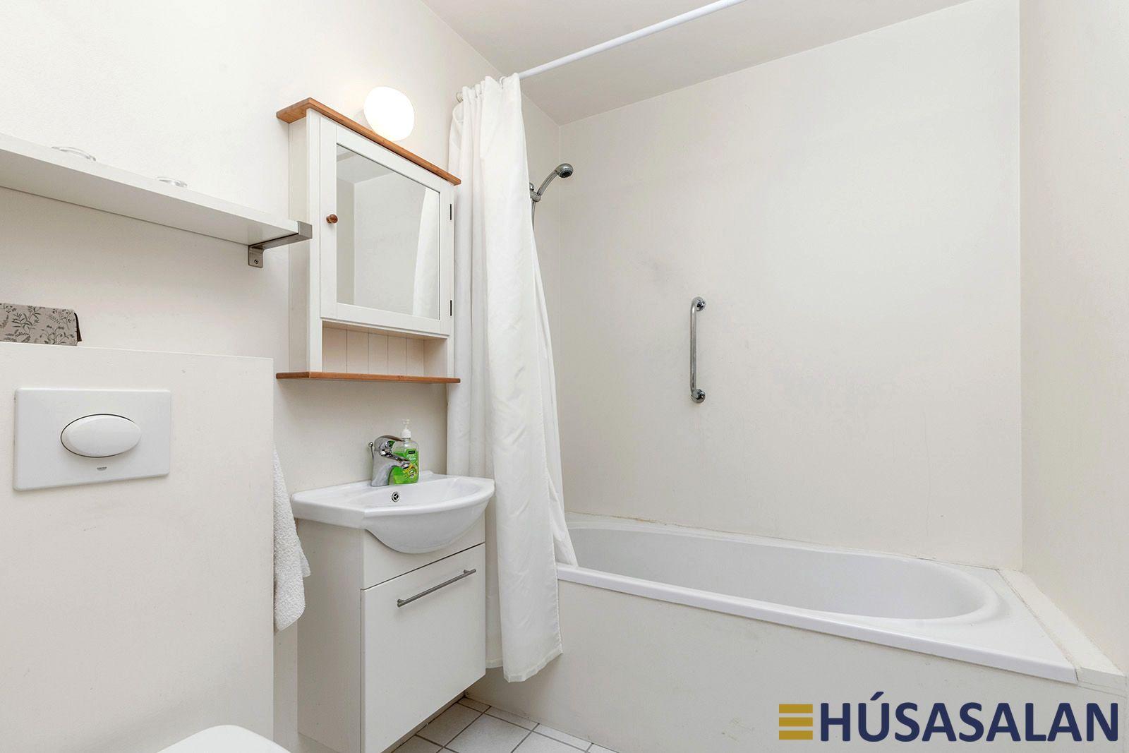 Nánari lýsing: Komið er inn í parketlagt forstofurými með fatahengi. Stórt dúklagt svefnherbergi með fataskáp. Baðherbergi er með gólfflísum, vegghengdu salerni, baðkari og skápum við vask. Parketlögð stofa með svaladyrum út á suður-svalir. Parketlagt opið eldhús með upprunalegri eldhúsinnréttingu, ofni og helluborði. Í eldhúsi við borðkrók eru tengingar fyrir þvottavél og þurrkara. Mjög fallegt parket er á íbúðinni.