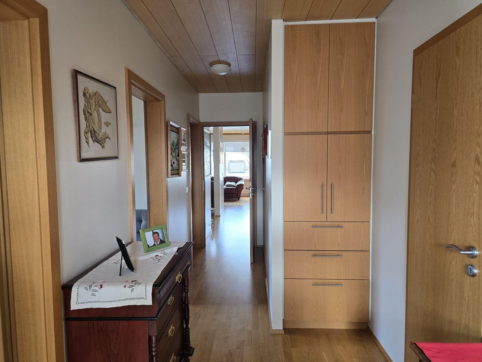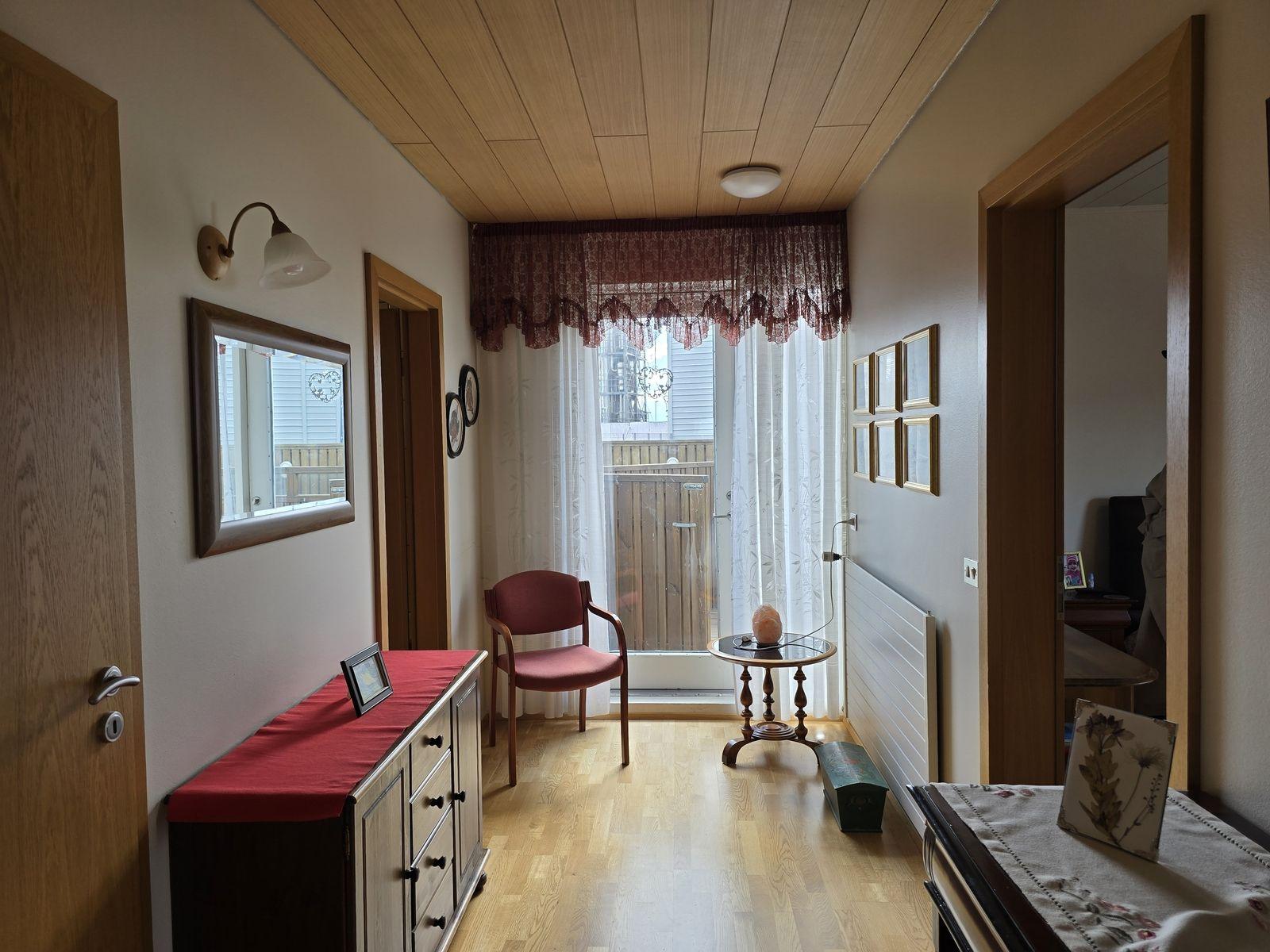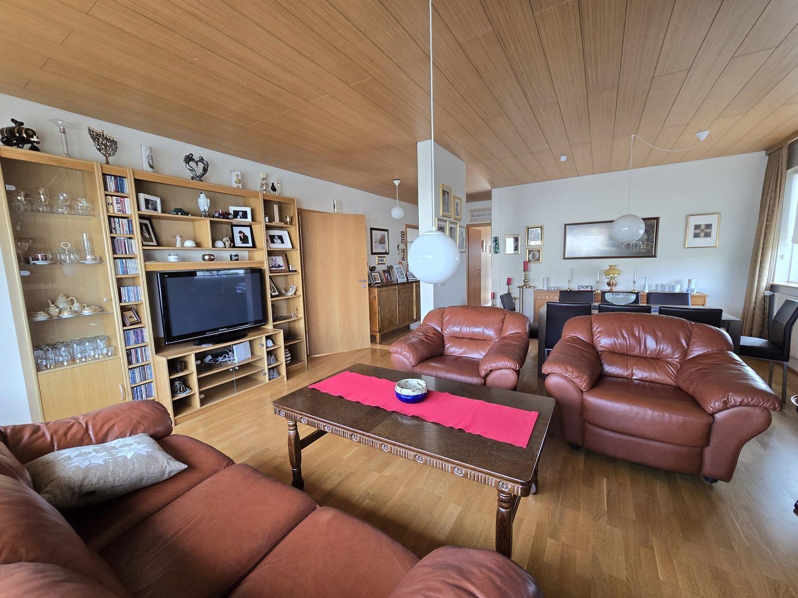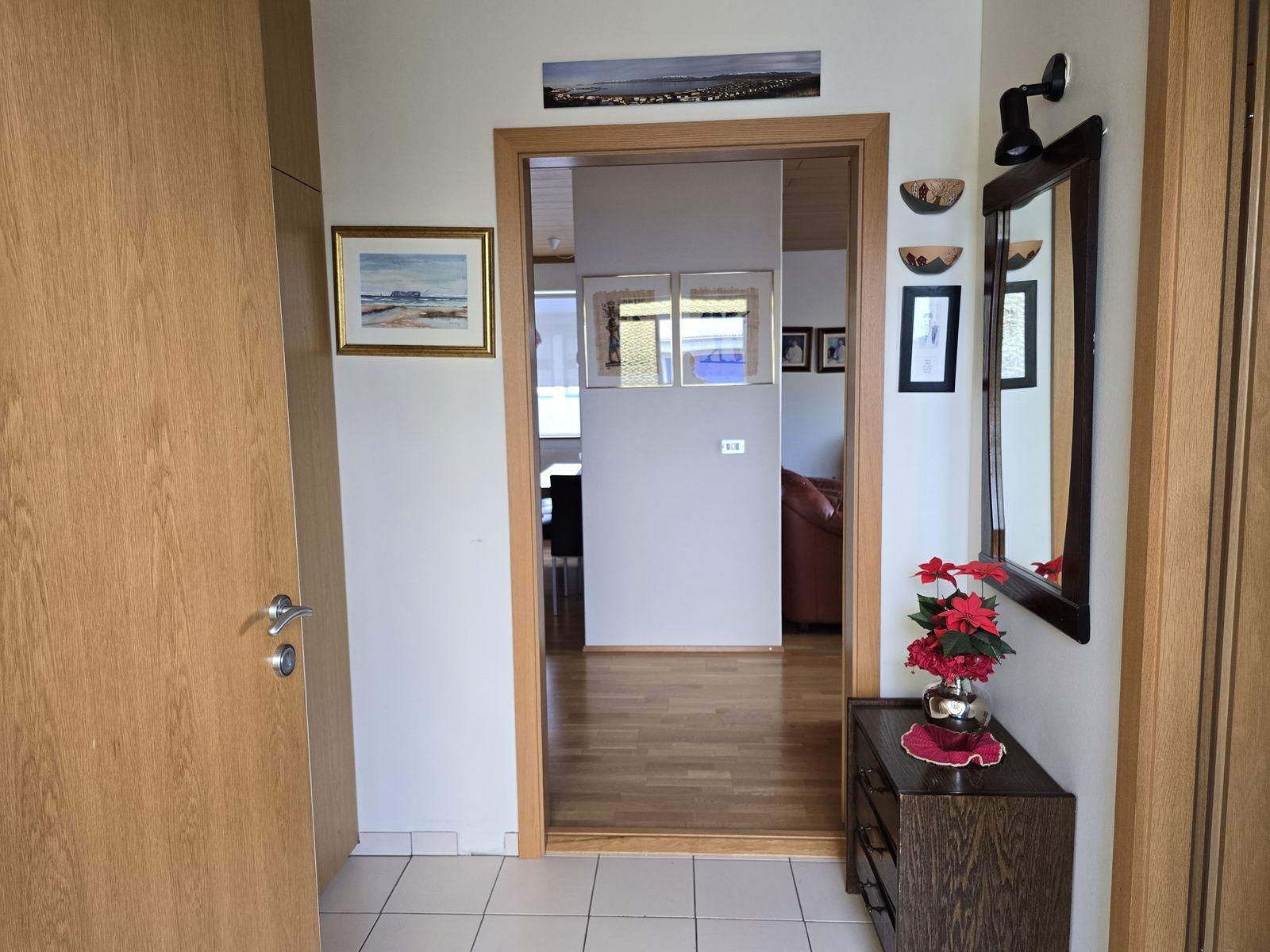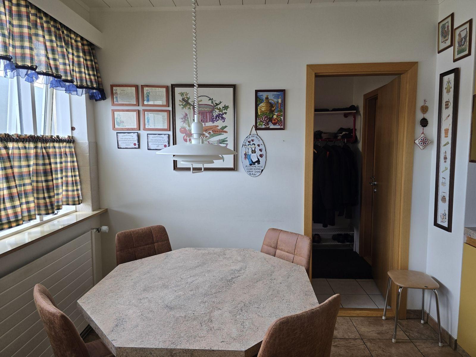 Íbúðarhúsið skiptist í 4 herbergi, stofu, eldhús, baðherbergi, gestasnyrtingu, forstofu og þvottahús. Gengið inn í flísalagða forstofu með fatahengi. Við forstofu er gestasnyrting og parketlagt herbergi með skápum. Frá forstofu er komið í parketlagt hol og þar við er stofa, eldhús og herbergisgangur. Stofa er parketlögð. Gluggar snúa til norður og vesturs. Eldhús er flísalagt og með upprunalegri innréttingu. Gott skápapláss. Frá eldhúsi er komið í þvottahús. Í þvottahúsi er vaskur. Útihurð frá þvottahúsi út á bílastæði. Hægt er að komast inn á herbergisgang frá þvottahúsi. Herbergisgangur parketlagður. Við ganginn eru 3 svefnherbergi og baðherbergi. Við enda gangsins er gengið út á pall sunnan við húsið. Herbergi eru öll parketlögð og skápar í hjónaherbergi. Á baðherbergi eru flísar á gólfi og veggjum, viðarinnrétting með ljósri borðplötu, stór sturta og baðkar.
