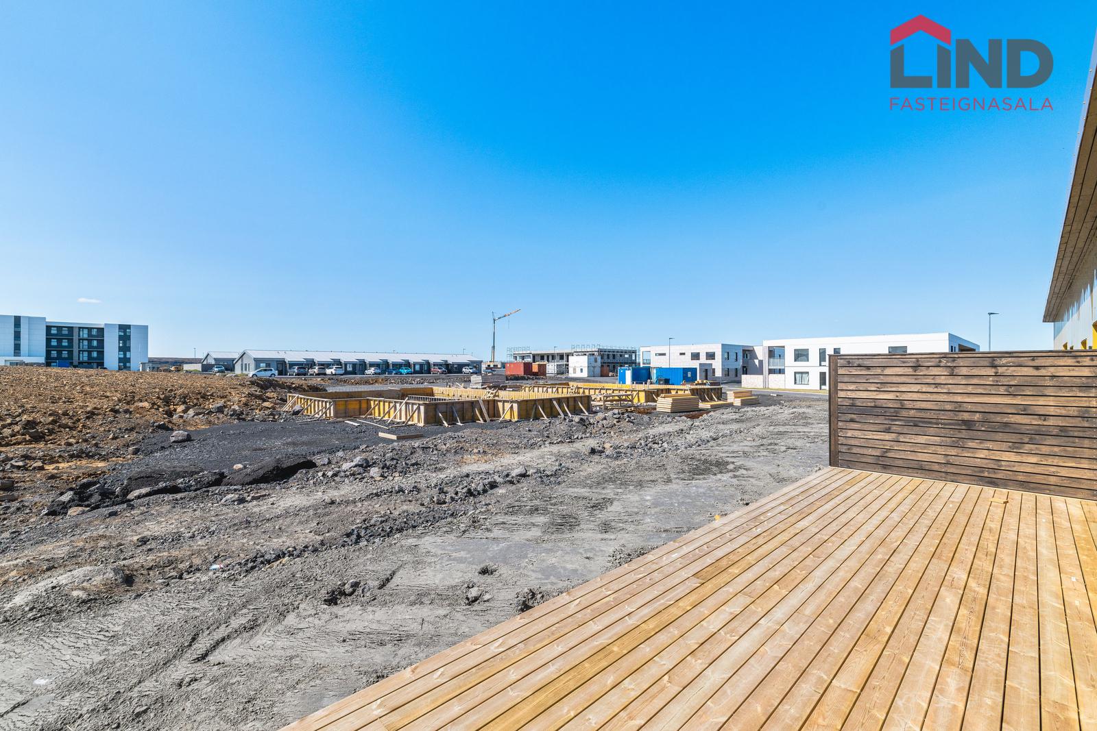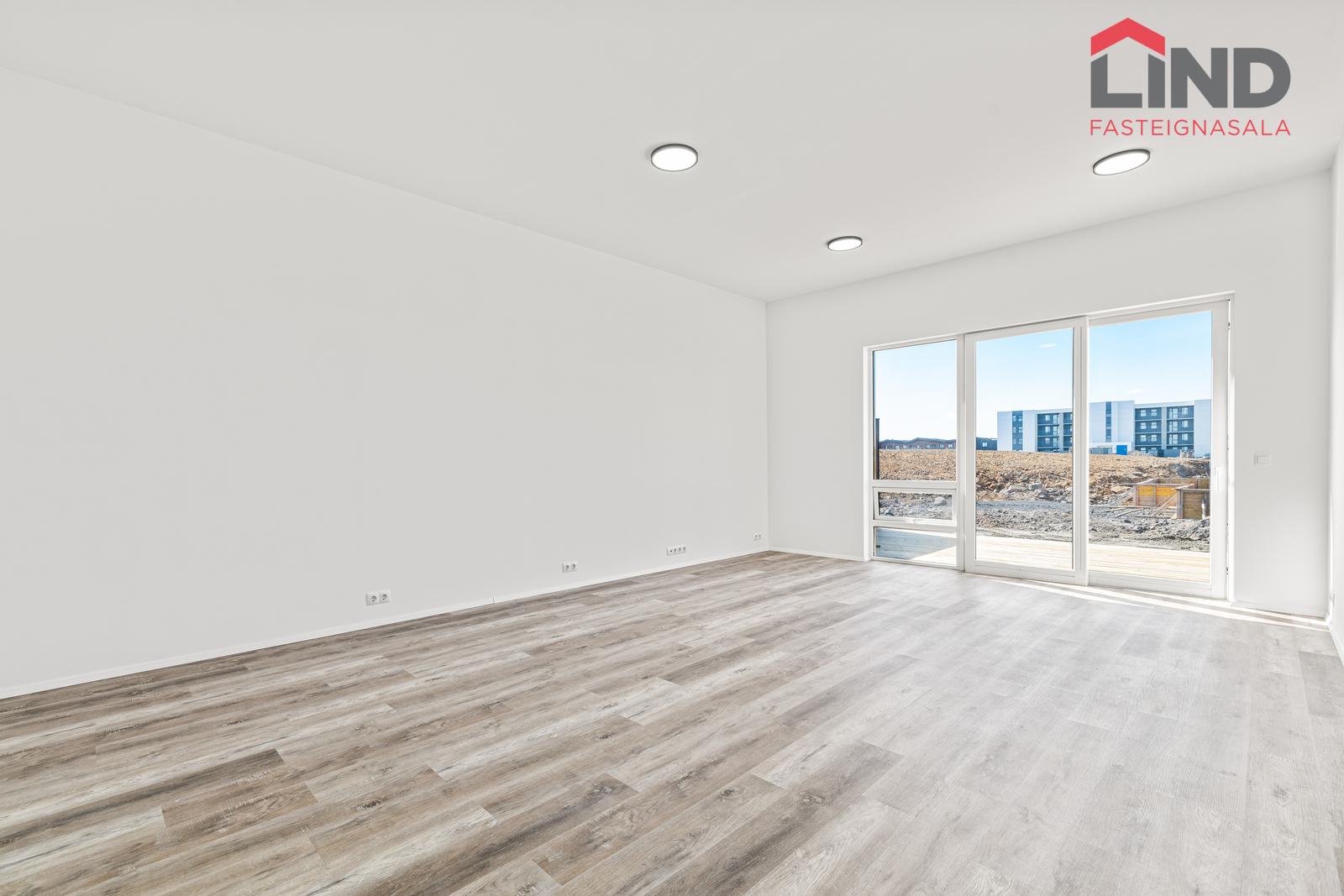 Lóð skilast með hellulögn að framan og verönd.Gólfefni í alrými og svefnherbergjum er výnilparket. Í votrýmum eru ljósar 60x60 flísar.