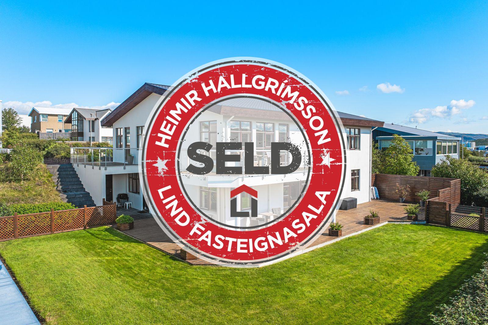 Aðalhæðin (efri hæð): Er vel skipulögð með stórum alrýmum og útgengi á stórar svalir með afar glæsilegu útsýni. Mikil lofthæð í flestum rýmum með innfelldri lýsingu. Fallegt útsýni er úr stofum og herbergjum efri hæðar. Falleg eldhúsinnrétting með steini á borðum, borðkrók og útgengi á auka svalir. Þvottaherbergi er staðsett inn af eldhúsi. Þá eru tvö herbergi og baðhergi á aðalhæð. Innangengt í bílskúr sem er með geymslulofti að hluta.