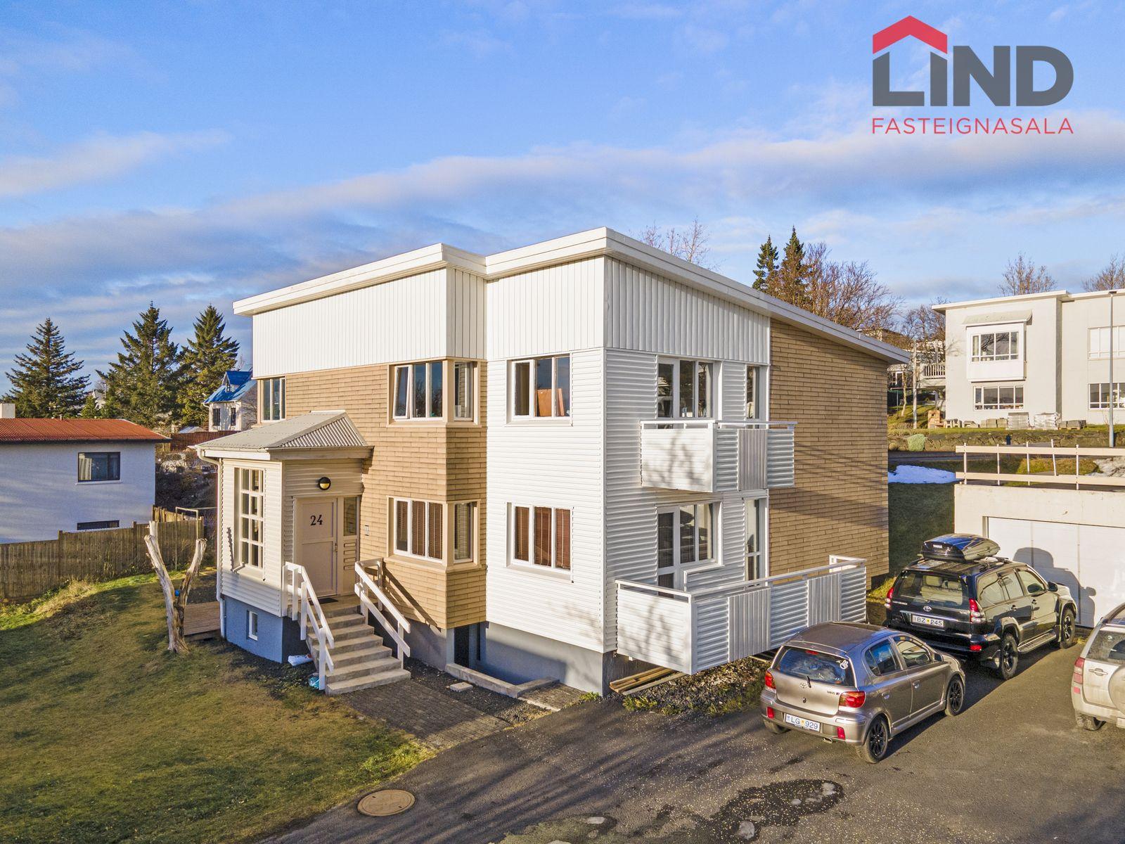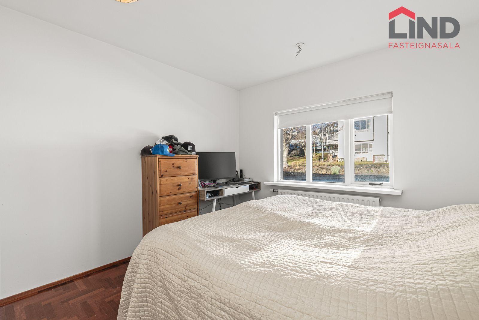 Nánari lýsing: Forstofa: Með flísum á gólfi og fataskáp. Stofa: Er rúmgóð, björt og með parketi á gólfi. Aukin lofthæð yfir stofu og gluggar til austurs og suðurs. Stofa rúmar setustofu og borðstofu. Útgengi á svalir til suðausturs með fallegu útsýni. Eldhús: Með flísum á gólfi og hvítri eldhúsinnréttingu. AEG bakaraofn og keramik helluborð. Gluggar til suðurs með fallegu útsýni og flísar á milli skápa. Hjónaherbergi: Er rúmgott og með parketi á gólfi. Fataskápar og gluggi til norðurs. Svefnherbergi II: Með parketi á gólfi, skáp og glugga til norðurs. Baðherbergi: Með flísum á gólfi og veggjum. Baðkar með sturtutækjum, salerni og góð innrétting við vask. Geymsla: Er 4,9 fermertar á stærð og er staðsett á jarðhæð. Málað gólf, opnanlegur gluggi og hillur. Þvottaherbergi: Er sameiginlegt á jarðhæð hússins.Málað gólf, vaskur og sértenglar fyrir hverja íbúð. Þurrkherbergi: Er sameiginlegt á jarðhæð hússins. Málað gólf og þvottasnúrur. Köld geymsla: Er sameiginleg undir útitröppum.