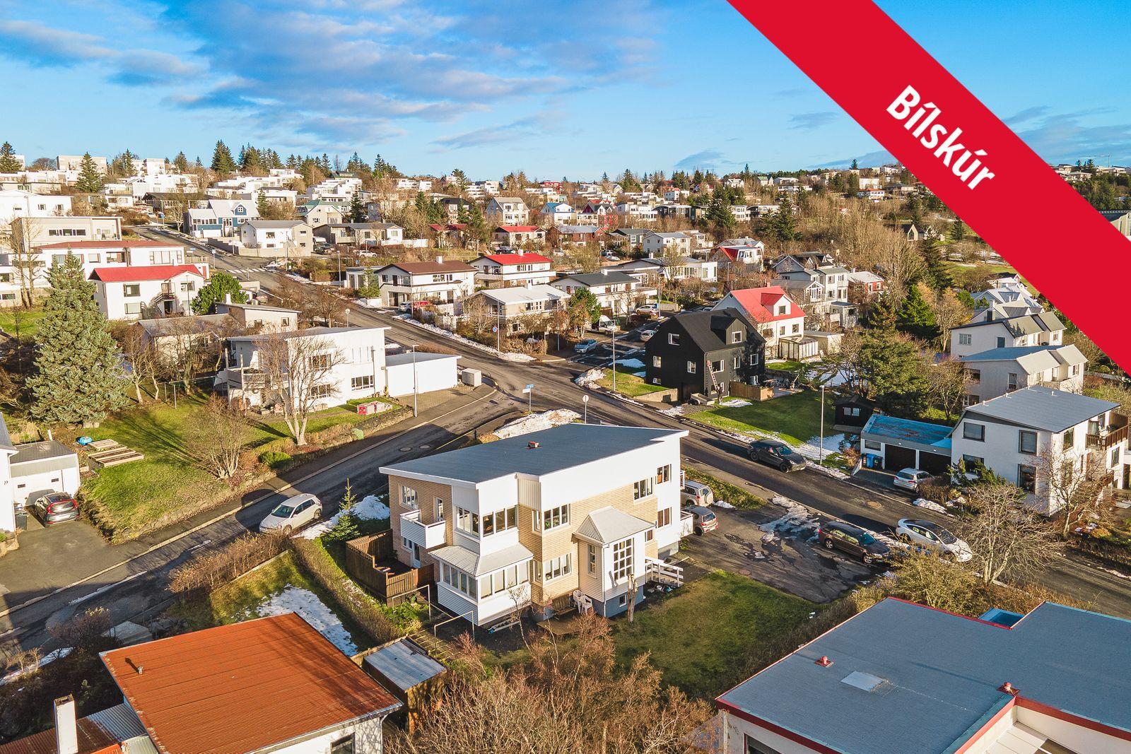 Bílskúr: Er frístandandi og 23,5 fermetrar. Nýleg bílskúrshurð með rafmagnsopnun (einnig bluetooth opnun). Snyrtilegur og góður bílskúr með heitu/köldu vatni og vask.