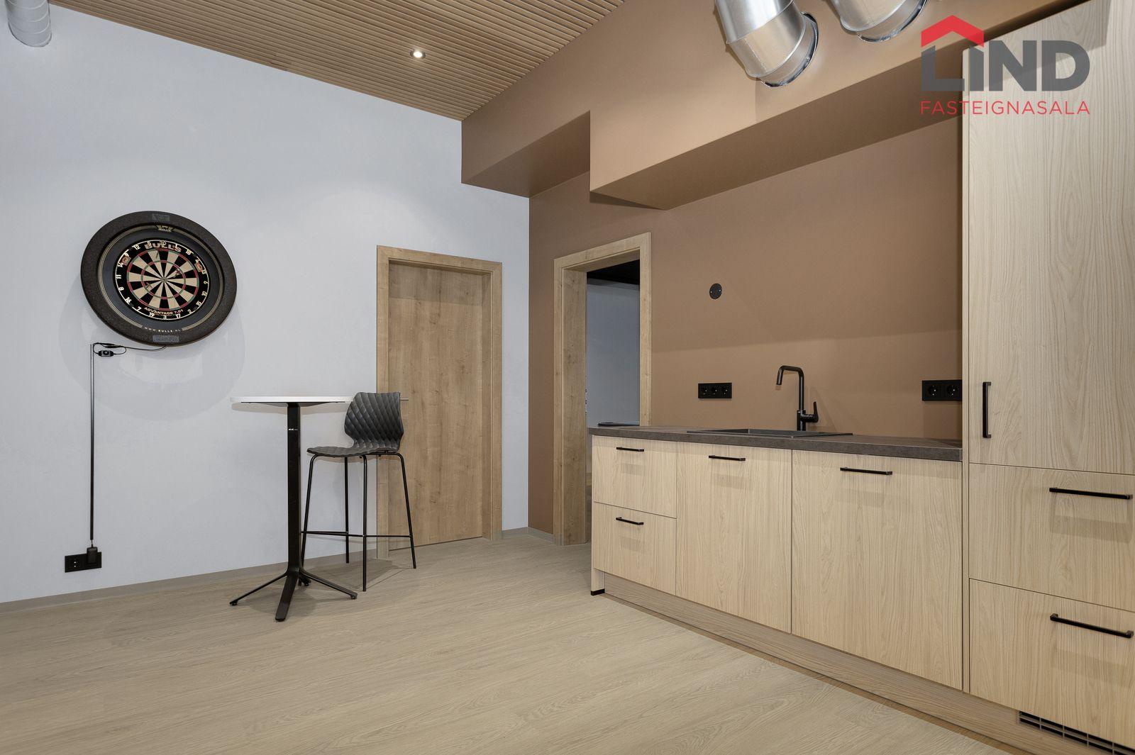 Glæsileg sameign (miðrými) eru í húsunum með útsýni að Heiðmörk. Miðrýmið skilast fullbúið með tveimur golfhermum, billiard aðstöðu, æfingasal og hlýlegri setustofu sem er hentug fyrir afslöppun, fundi eða óformlega samveru. Einnig verður eldhúsinnrétting, borð og stólar fyrir veislur, spilakvöld eða öðru líkt þar sem notalegt andrúmsloft ræður ríkjum. Auk þess er þvottaaðstaða fyrir bifreiðar í bílakjallara fyrir íbúa.