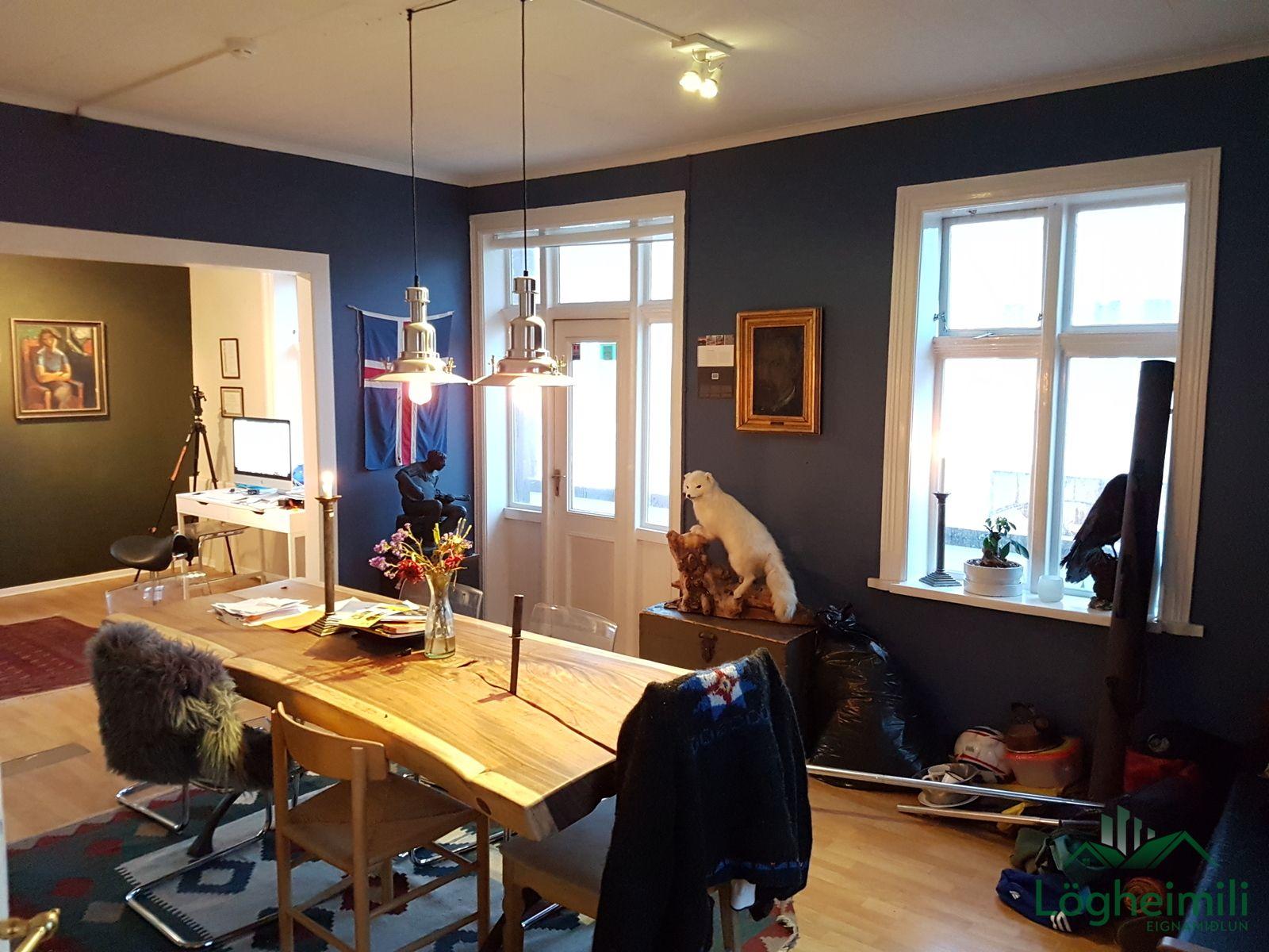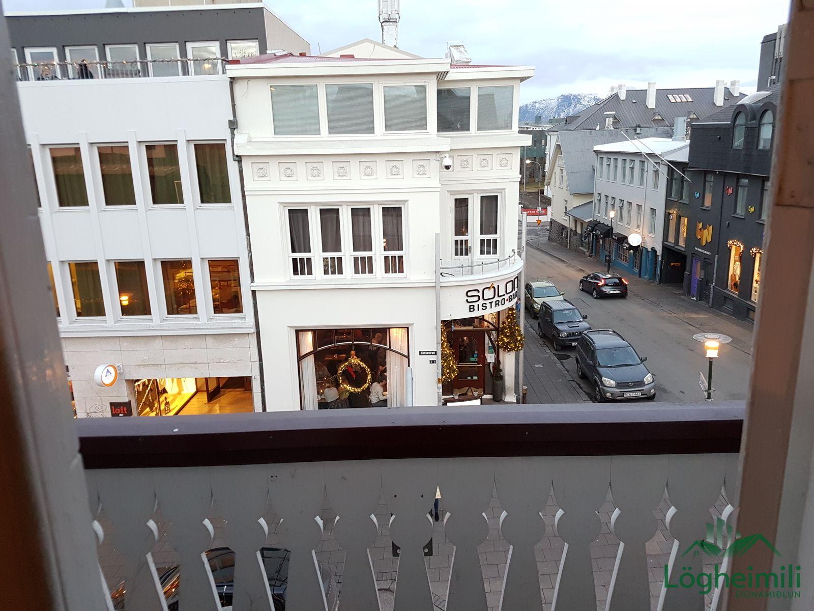 Til leigu bjart skrifstofuhúsnæði á 2. og 3. hæð í fallegu húsi á horni Bankastrætis og Ingólfsstrætis, í miðborg Reykjavíkur. Möguleiki er að leigja sér, hvora hæð fyrir sig. Langtímaleiga. Laust fljótlega. Sér inngangur. Hvor hæð er skráð 71,3 fm. skv. Fasteignaskrá Íslands og þvi báðar hæðir samtals 142,6 fm. Þriðja hæð er undir súð. Svalir 2. og 3. hæðar snúa út að Bankastræti. Sameiginlegt eldhús með endurnýjaðri eldhúsinnréttingu og dúk á gólfi. Gengið er inn á jarðhæð, í stigahús Ingólfstrætismegin. Annarri hæð hefur verið skipt í 3-4 herb. með nýlegri snyrtingu og plastparket á gólfum. Þriðju hæð hefur verið skipt í 3-4 herb. með snyrtingu og harðparketi á gólfum. Óskað er tilboðs í leigu, en leiga er lágmark kr. 500-600 þús. á mánuði + VSK, fyrir báðar hæðir. Farið er fram á tryggingu vegna leigu. Samkvæmt fasteignaskrá HMS er 2. hæð skráð verslun 71,3 fm. og 3. hæð vörulager 71,3 fm. Myndir í auglýsingu eru frá árinu 2018.