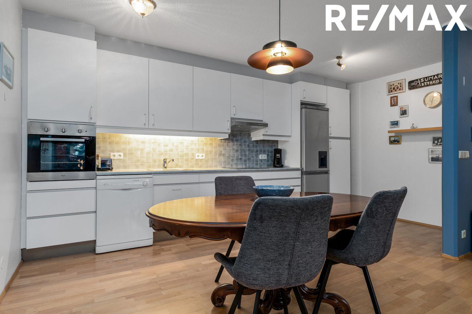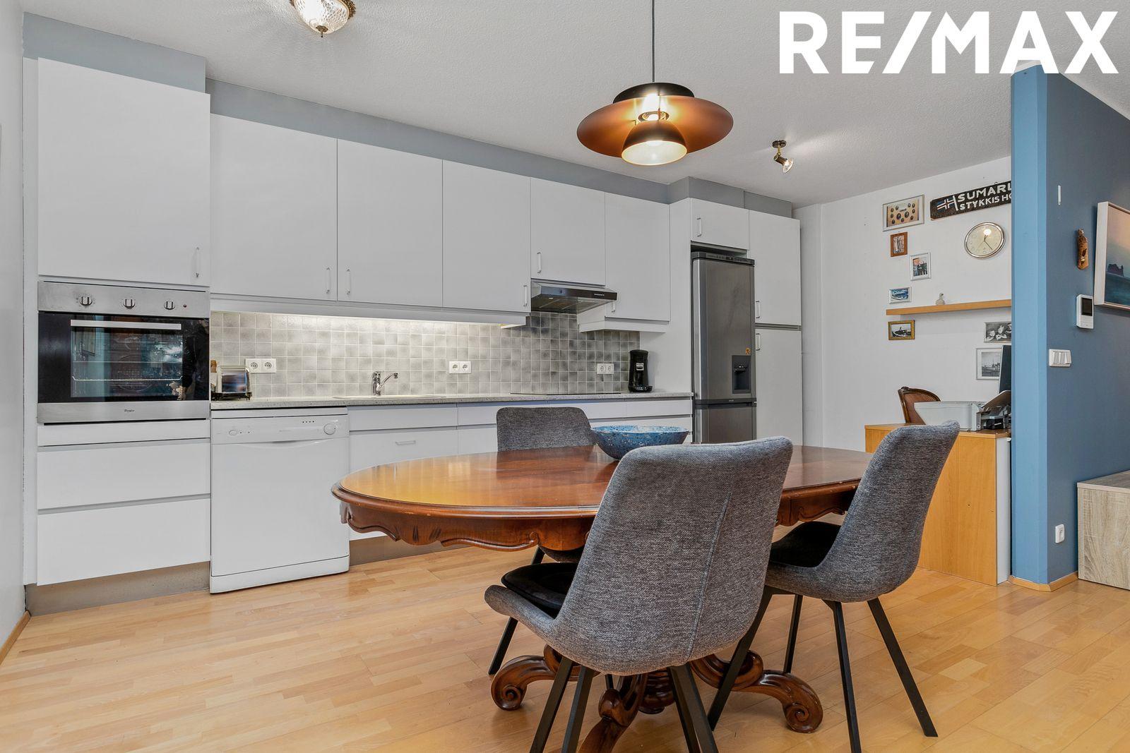 Borðstofa + setustofa: Borðstofa og setustofa eru saman í góðu opnu rými fyrir framan eldhúsið. Parket er á gólfi. Stór gluggi er í stofunni sem nær niður í gólf. Glugginn var endurnýjaður í heild sinni fyrir rétt um 1-2 árum. Glæsilegt útsýni er frá stofunni út í garðinn við húsið og alla leið að fjallahringnum í austur. Gengið er út á svalir frá setustofunni sem er inndregnar inn í húsið og því sérlega skjólgóðar í fallegu veðri.