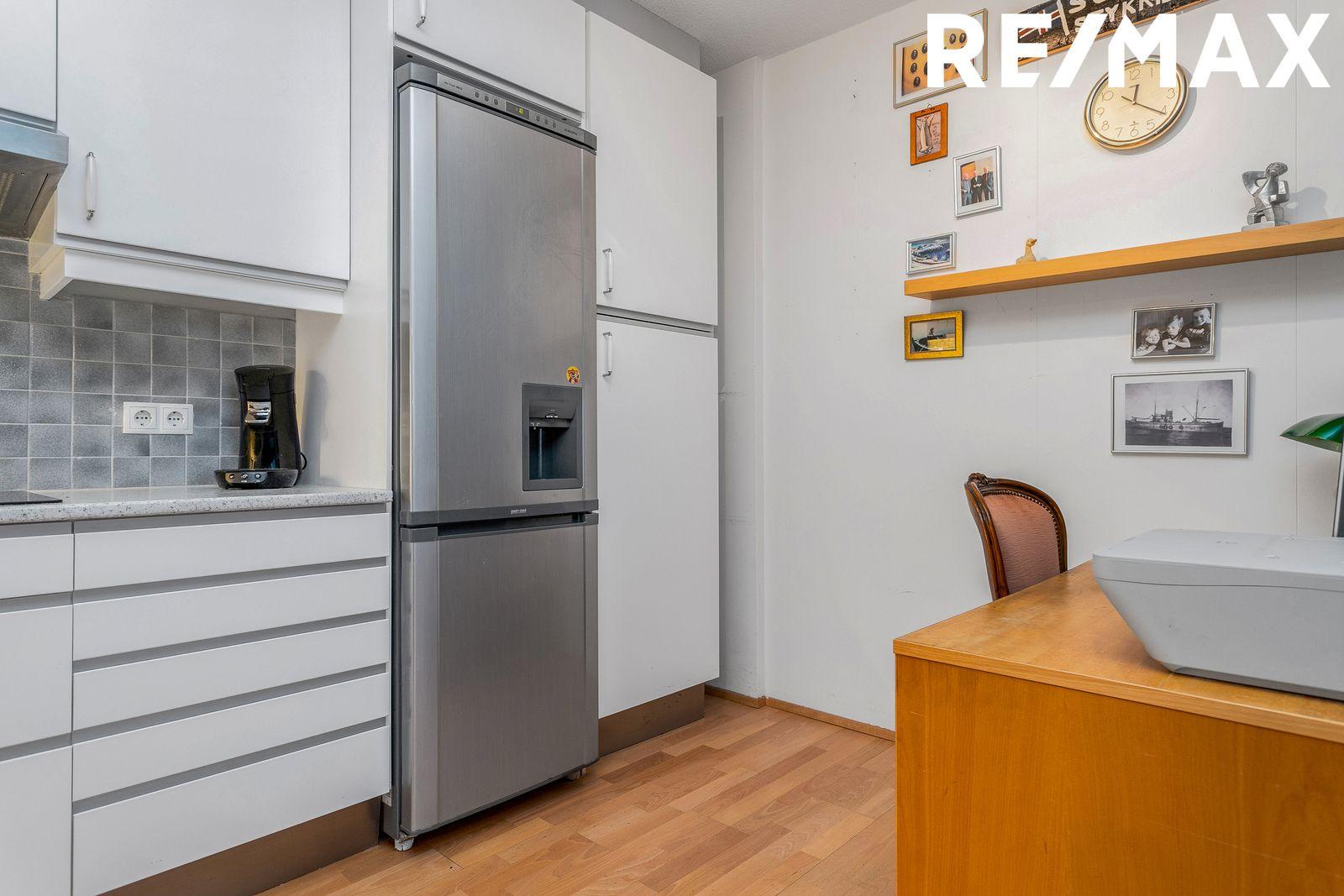 Eldhús: Eldhúsið er með fallegri endurnýjaðri innréttingu með góðu skápaplássi. Innréttingin er hvít með efri og neðri skápum á einn heilan vegg, veggja á milli. Efri skápar ná upp í loft. Ljósgráar flísar eru á milli skápa, bakaraofn er í vinnuhæð og tengi er fyrir uppþvottavél. Lítið skot er í enda eldhússins sem hægt er að nýta til dæmis sem horn fyrir skrifborð og tölvu (má sjá á síðustu myndum í myndabunka).