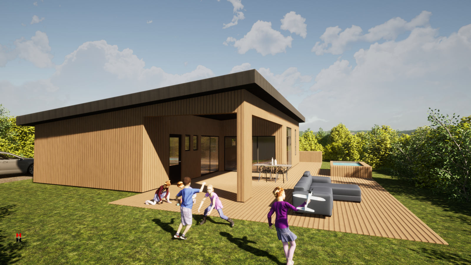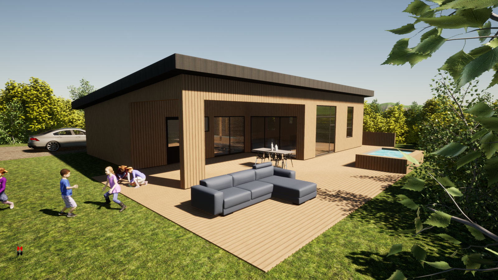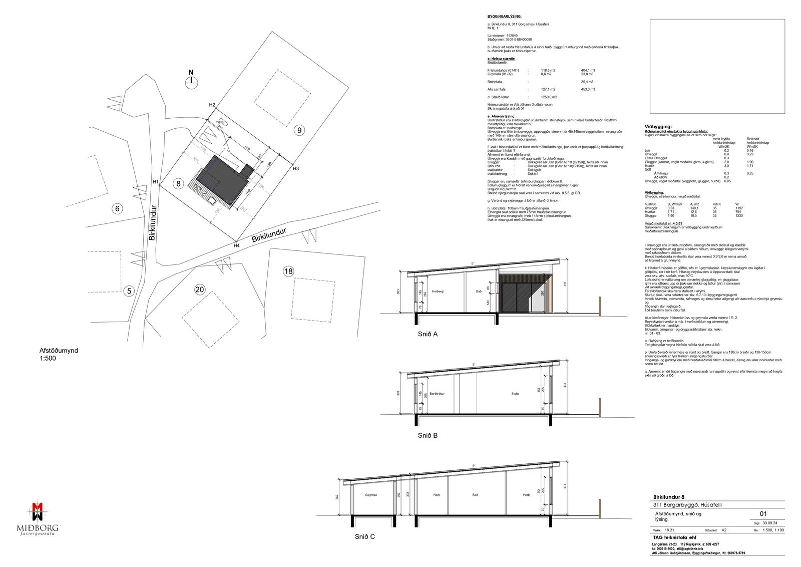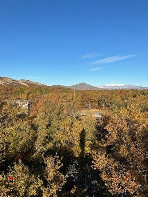 Um er að ræða afar glæsilega og vel staðsetta 1.250 fm. eignarlóð ásamt púða og samþykktum teikningum af 127,1 fm. frístundahúsi á einni hæð. Húsið er teiknað af teiknistofunni TAG með einhalla þaki og skiptist í forstofu, hol/gang, stofur, eldhús, tvö baðherbergi og þrjú svefnherbergi, þar af hjónasvíta með sérbaðherbergi. Íbúðarhluti hússins er 118,5 fm. og geymsla 8,6 fm. Húsið er teiknað sem timburhús, en einnig er möguleiki á að reisa húsið úr forsteyptum einingum. Gert er ráð fyrir gólfhitakerfi í steyptri plötu. Salarhæð við suðurhlið er ca. 3,9 m. Gólfsíðir gluggar á suður- og vesturhliðum.