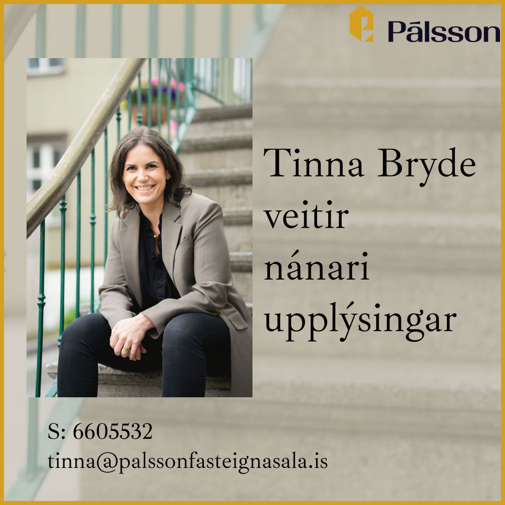 - Loftræstikerfi með varmaskiptum og loftsíumAllar nánari upplýsingar veita :Tinna Bryde Lgf. í síma 660-5532 tinna@palssonfasteignasala.is