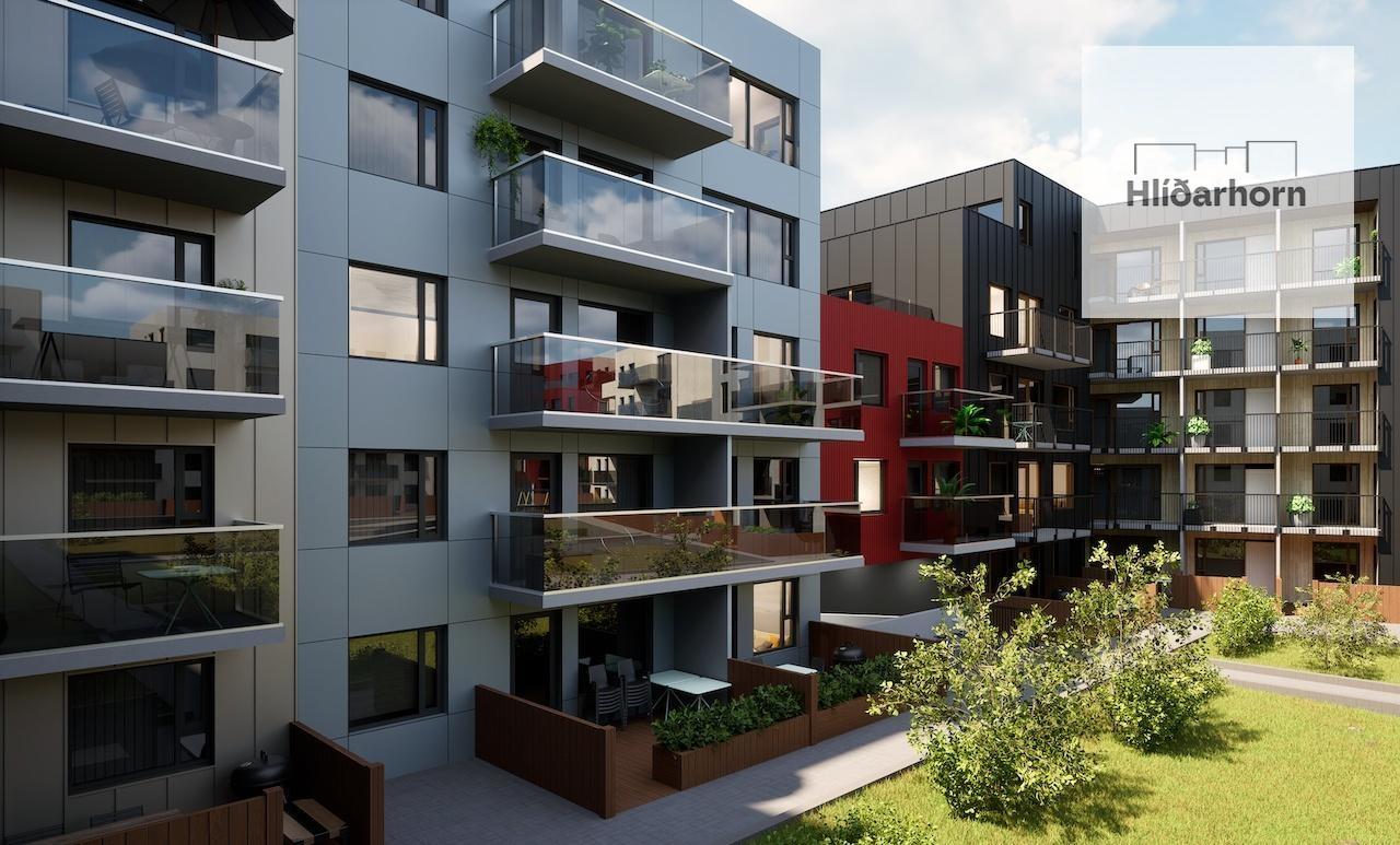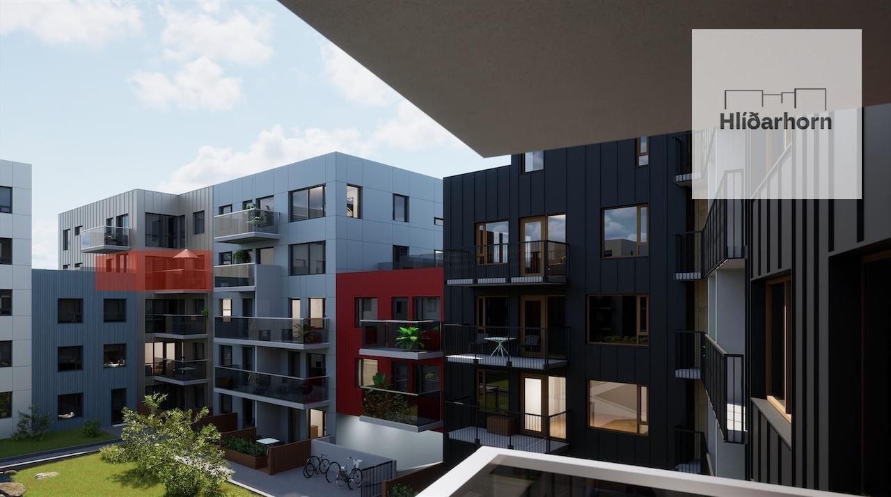 Hlíðarhorn er glæsileg 3-5 hæða nýbygging með 10 stigahúsum sem mynda hring um opinn innri garð. Í Hlíðarhorni verða 195 einstaklega vandaðar og fjölbreyttar íbúðir, 2-5 herbergi að stærð. Hver íbúð er með svölum, þaksvölum eða sérafnotareit í innri garði og hönnuð til að hámarka náttúrulega birtu og nýtingu fermetra. Íbúðirnar eru sérstaklega vandaðar í alla staði, hvað varðar hönnun, innréttingar og tæki. Einungis er unnið með bestu fáanlegu lausnir og efni og umhverfisvernd höfð að leiðarljósi. Hver íbúð hefur sérstæða loftræsingu með varmaendurvinnslu og lögð er sérstök áhersla á hljóðvist. Byggingin er staðsteypt, einangruð og klædd með mismunandi lituðum álklæðningum og við, með gluggum úr ál/við og undir byggingu er bílakjallari með fyrirkomulagi samnýtingar. Hlíðarhorn er miðsvæðis í Reykjavík, í póstnúmeri 102, á jaðri Hlíðahverfis og Þingholta, við fætur Öskjuhlíðar. Öll helsta þjónusta er því í göngu/hjólafæri, samgöngur, skólar, íþróttaaðstaða, iðandi mannlíf og stórir vinnustaðir.