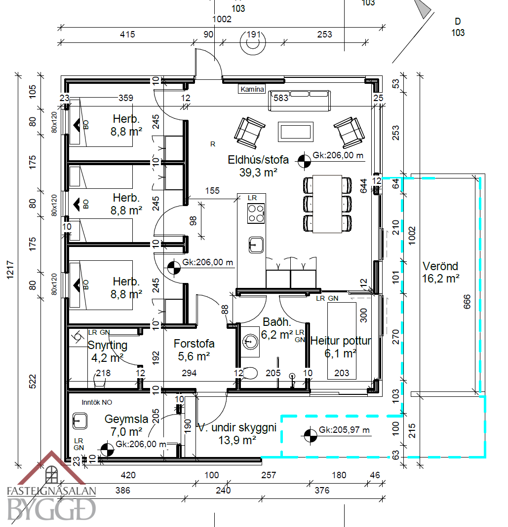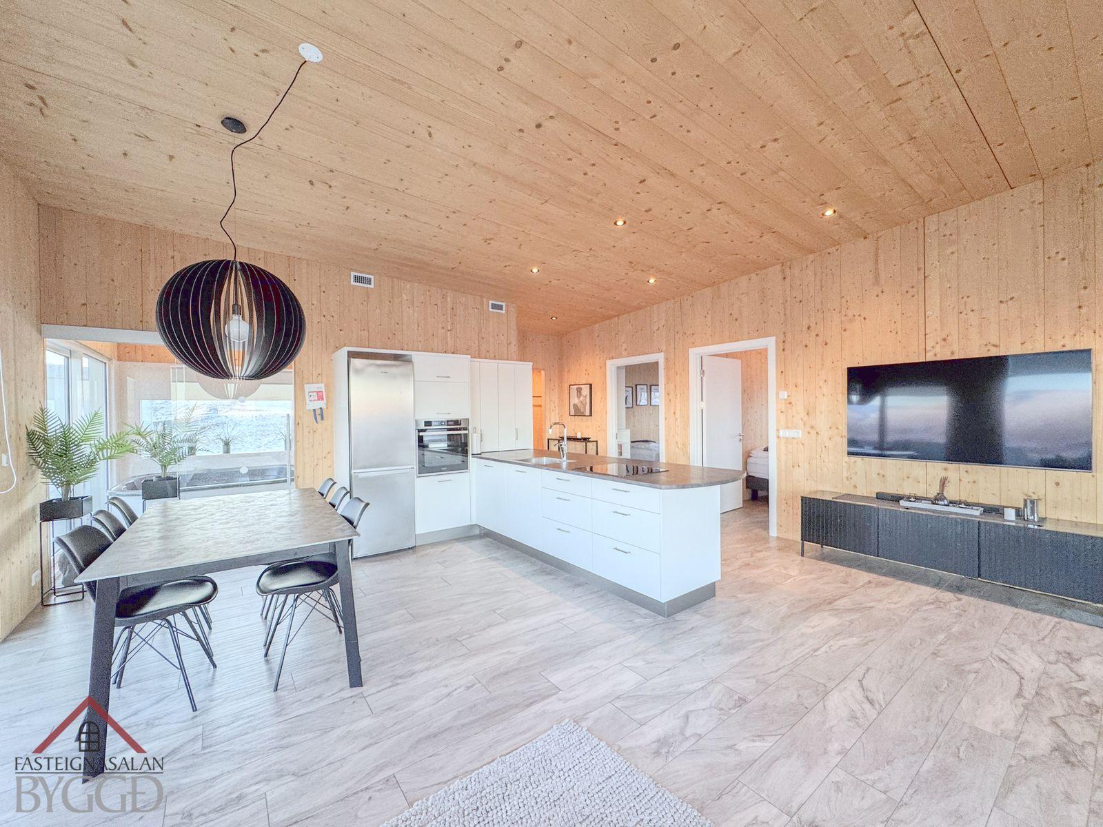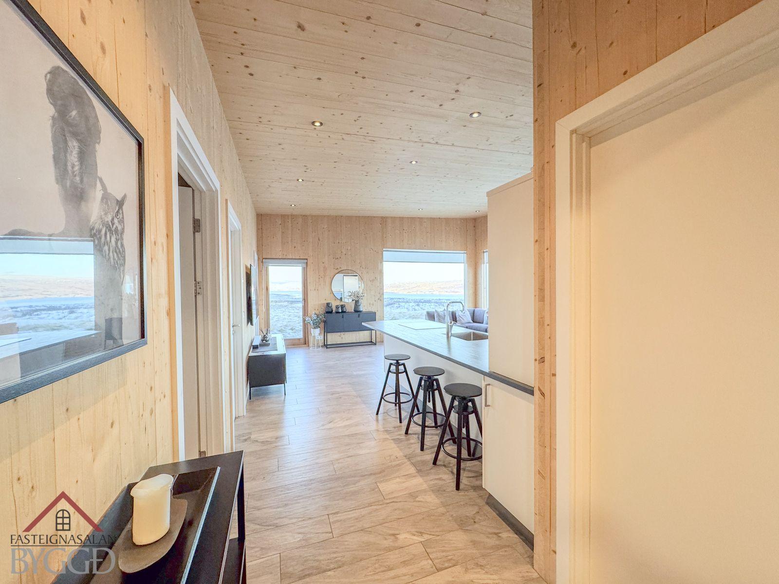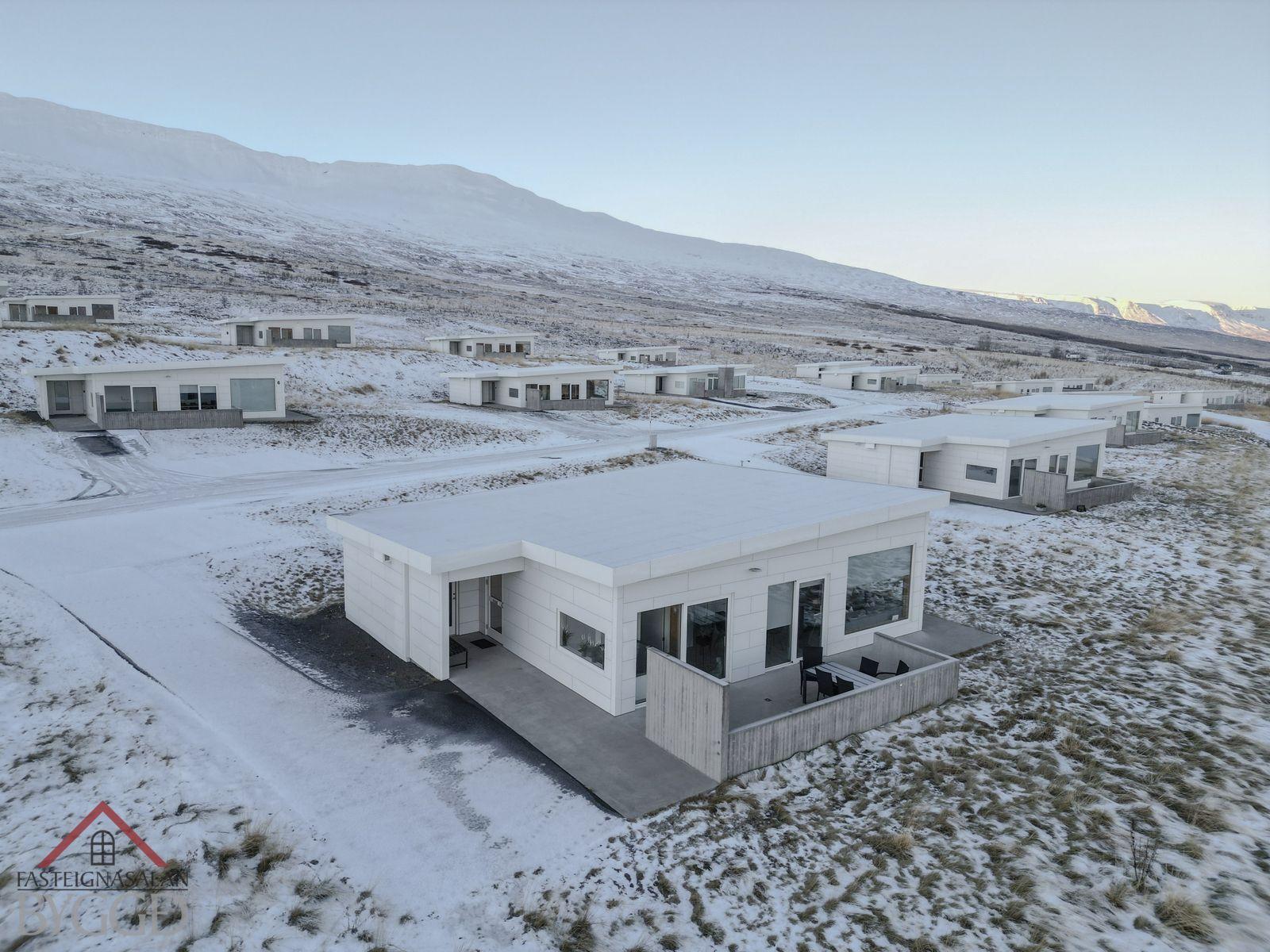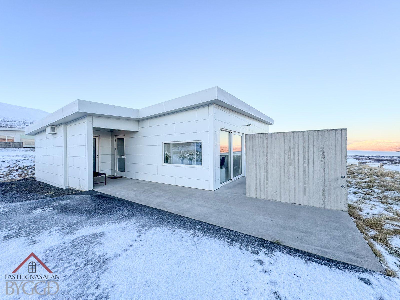 Annað: - Bílastæði við húsið er malbikað, auk þess er malbikað heim að steyptri verönd fyrir utan hús. - Gólfhiti í öllum rýmum - Sólpallar og stéttar og skjólveggir eru úr forsteyptum einingum. Stétt er steypt. Snjóbræðslulagnir eru í pöllum og stéttum. Snjóbræðslu er stýrt í gegnum lokað kerfi í inntaksrými. - Loftræstisamstæða með varmaendurvinnslu er í húsinu og er hún staðsett í útigeymslu. Útsog er tekið á fimm stöðum; á snyrtingu, geymslu, þvottahúsi, eldhúsi og pottarými. Innloftsstútar eru í alrými og svefnherbergjum.