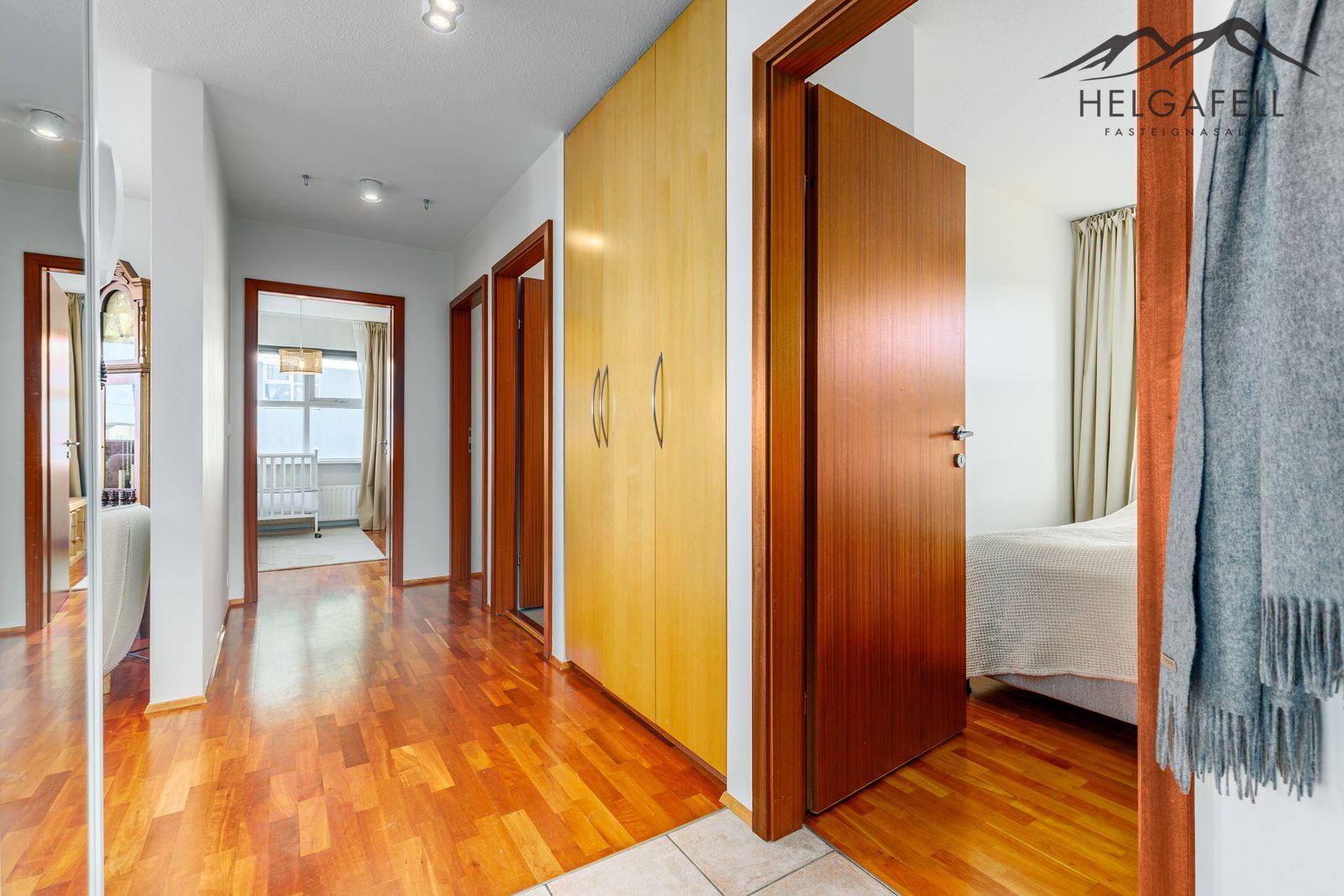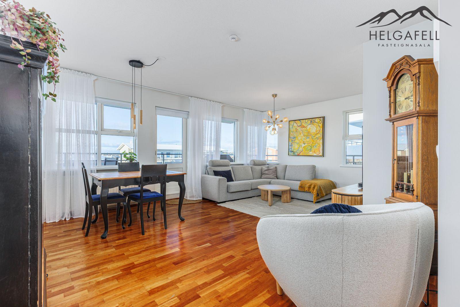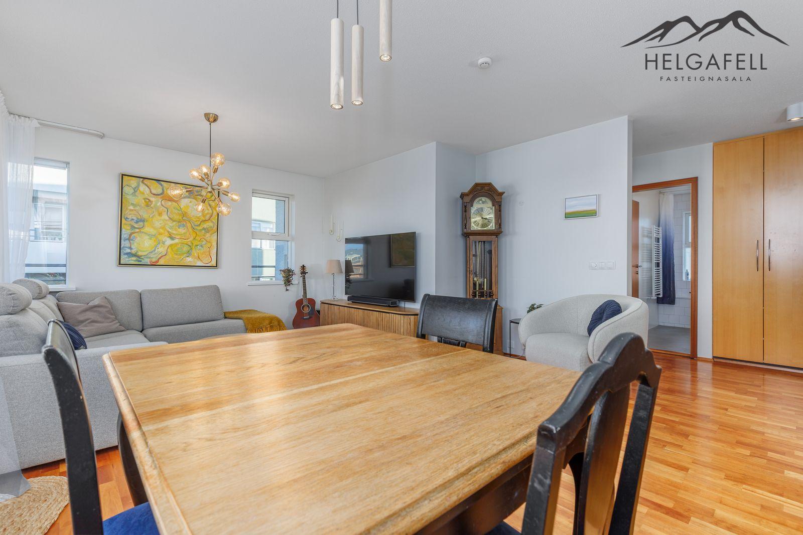 Helgafell fasteignasala og Hólmar Björn Sigþórsson löggiltur fasteignasali kynna í einkasölu Galtalind 3, íbúð 201, 201 Kópavogi:Um er að ræða fallega, bjarta og vel skipulagða 4ra herbergja endaíbúð á 2. hæð í litlu vel viðhöldnu fjölbýlishúsi með fallegu útsýni ásamt bílskúr. Húsið er mjög vel staðsett í Lindahverfi í Kópavogi. Birt stærð er 124,7 fm og er íbúðarhluti 103 fm og bílskúr 21,7 fm.