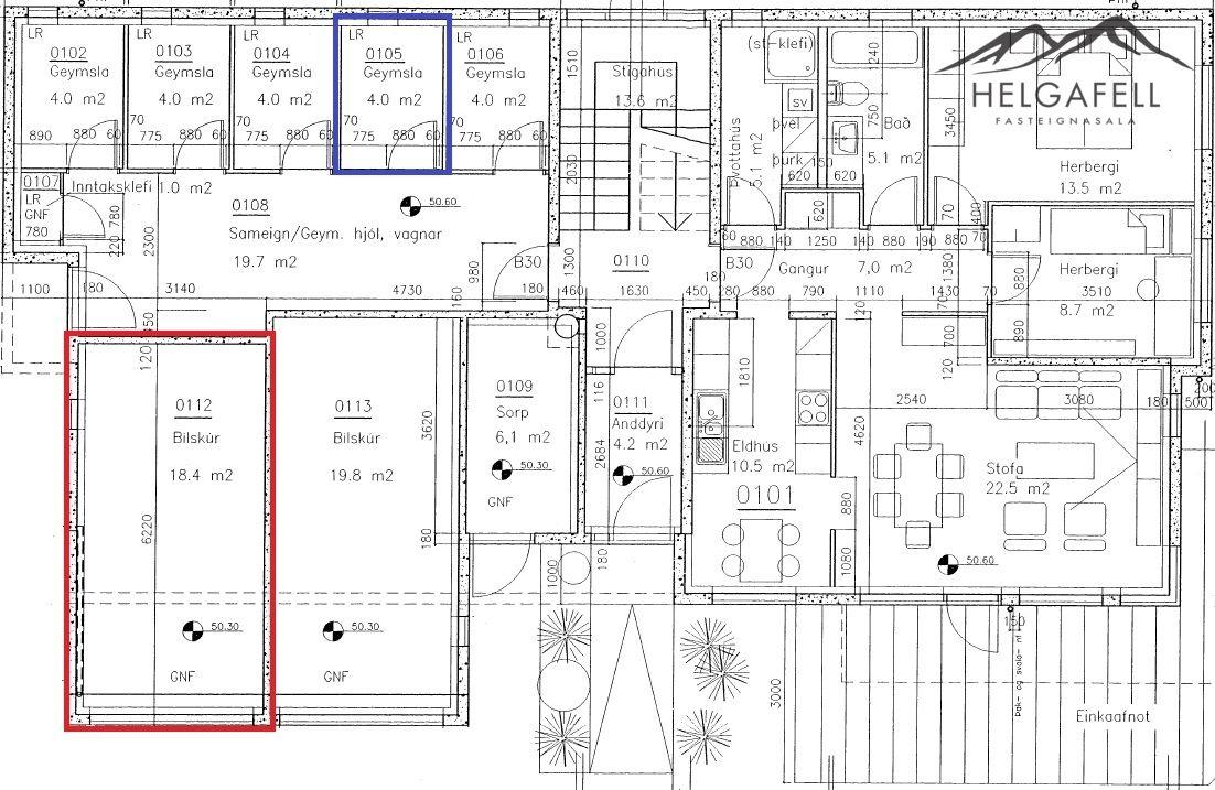 Geymsla: Í sameign á fyrstu hæð er 4,9 fm sérgeymsla, sérsmíðaðar hillur, gluggi, málað gólf.