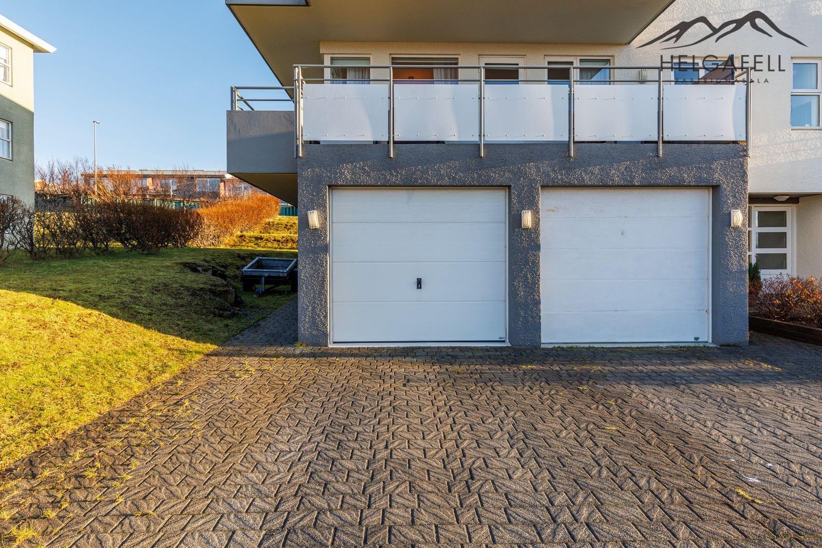 Bílskúr: Stærð 21,7 fm, heitt og kalt vatn, hiti, geymsluloft, snjóbræðsla í bílaplani fyrir framan bílskúr, sér afnotaréttur á bílastæði framan við bílskúrinn,