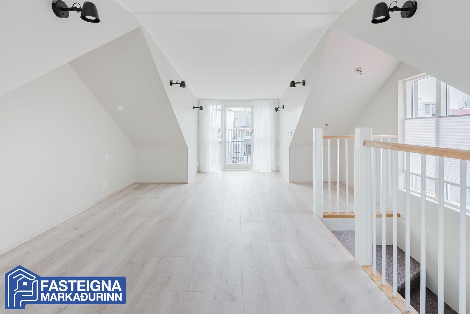 - Innihurðir, rennihurðir og gólfefni eru frá BirgissonLýsing íbúðar á efri hæð og í risi:Sameiginlegur inngangur er með íbúð á 1. hæð og sameiginleg flísalögð forstofa.