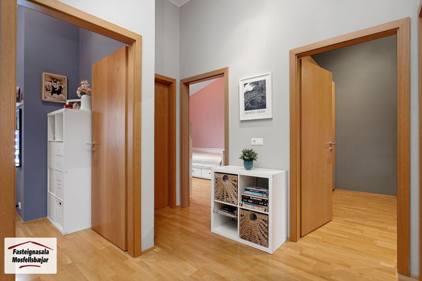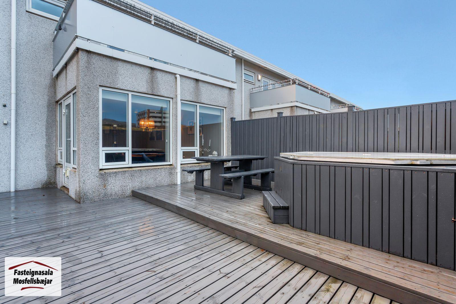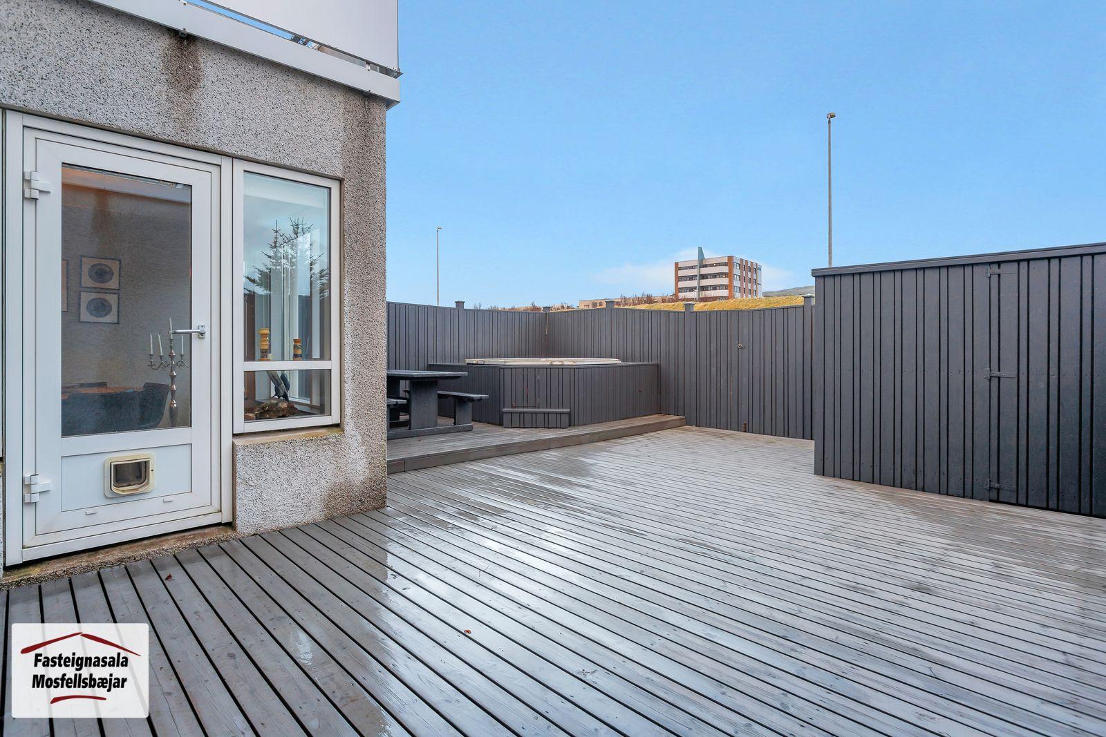 ** Opið hús þriðjudaginn frá kl. 16:30 til 17:00 - Theodór Emil Karlsson, löggiltur fasteignasali - teddi@fastmos.is eða 690-8040 - Svanþór Einarsson, löggiltur fasteignasali - svanthor@fastmos.is eða 698-8555 - Steingrímur Benediktsson, löggiltur fasteignasali - steingrimur@fastmos.is eða 862-9416 **Fasteignasala Mosfellsbæjar kynnir: Fallegt og vel skipulagt 165,5 m2 4-5 berbergja raðhús á tveimur hæðum með innbyggðum bílskúr við Tröllateig 31 í Mosfellsbæ. Eignin er skráð 165,5 m2, þar af raðhús 139,5 m2 og bílskúr 26,0 m2. Eignin skiptist í: Neðri hæð: Forstofa, gestasalerni, gangur, geymsla, eldhús, stofa/borðstofa og bílskúr. Efri hæð: þrjú svefnherbergi, baðherbergi, þvottahús og sjónvarpshol sem hægt er að breyta í svefnherbergi. Stór timburverönd með heitum potti og svalir í suðurátt. Hellulagt upphitað bílaplan. Góð staðsetning miðsvæðis í Mosfellsbæ. Stutt í skóla, íþróttasvæði, verslun, heilsugæslu og alla helstu þjónustu.Smelltu hér til að fá söluyfirlit sent strax.Nánari lýsing:Neðri hæð:Forstofa er með flísum á gólfi. Úr forstofu er innangengt í bílskúr.