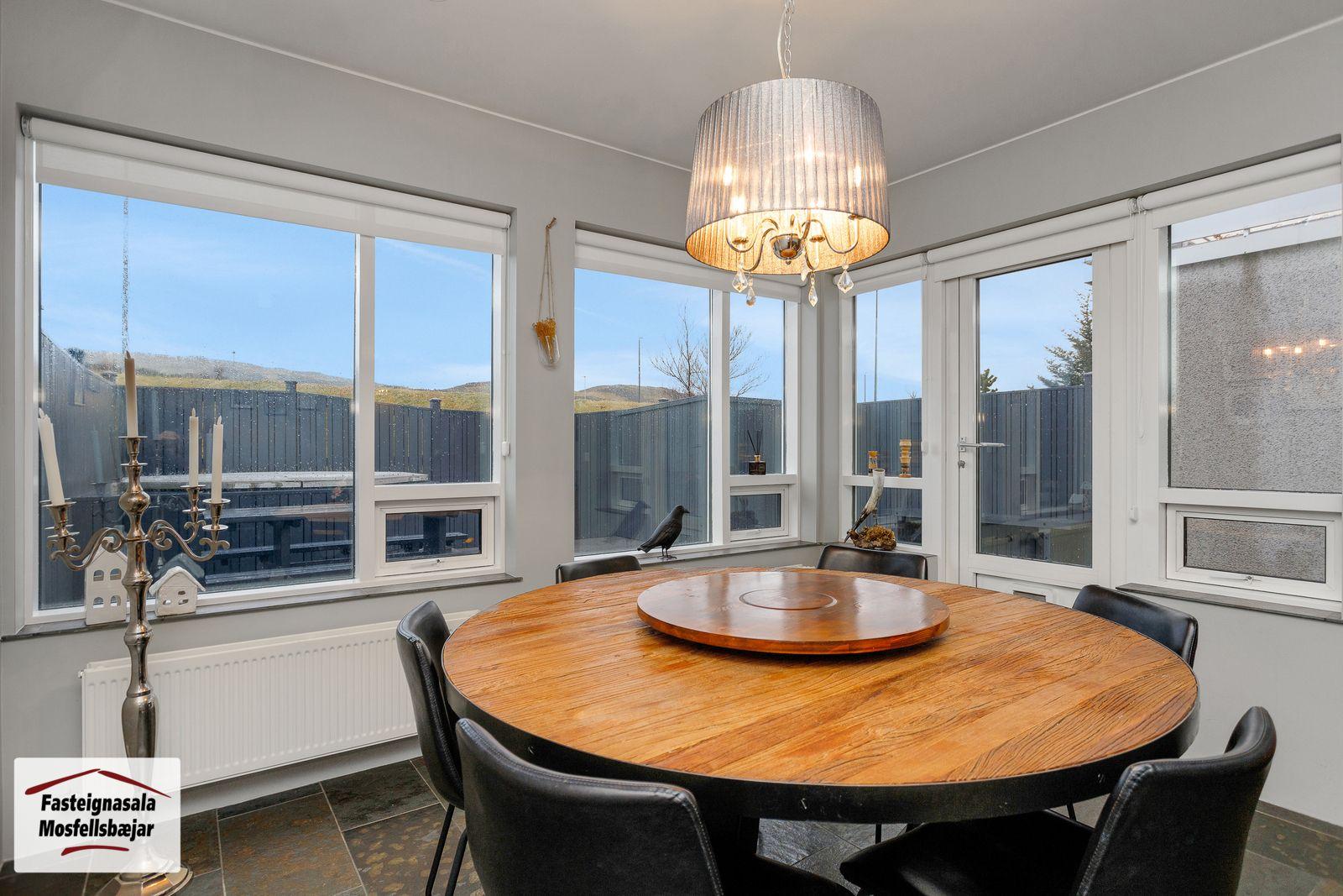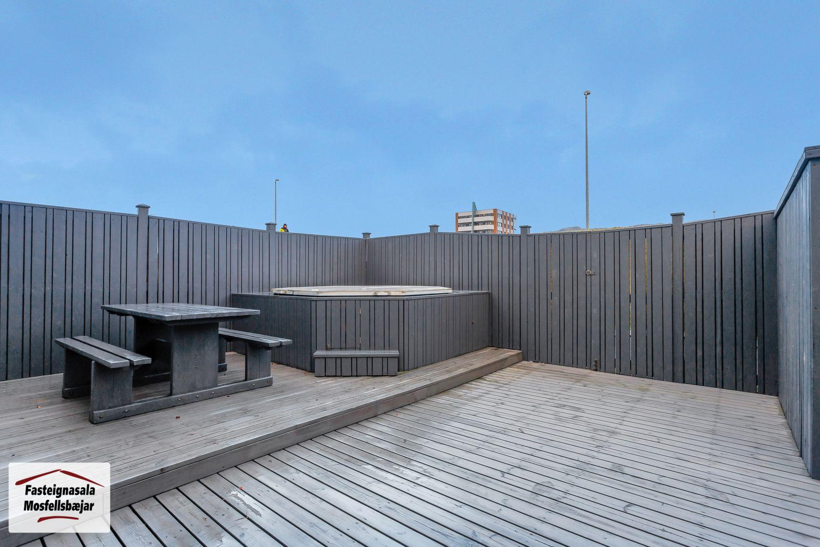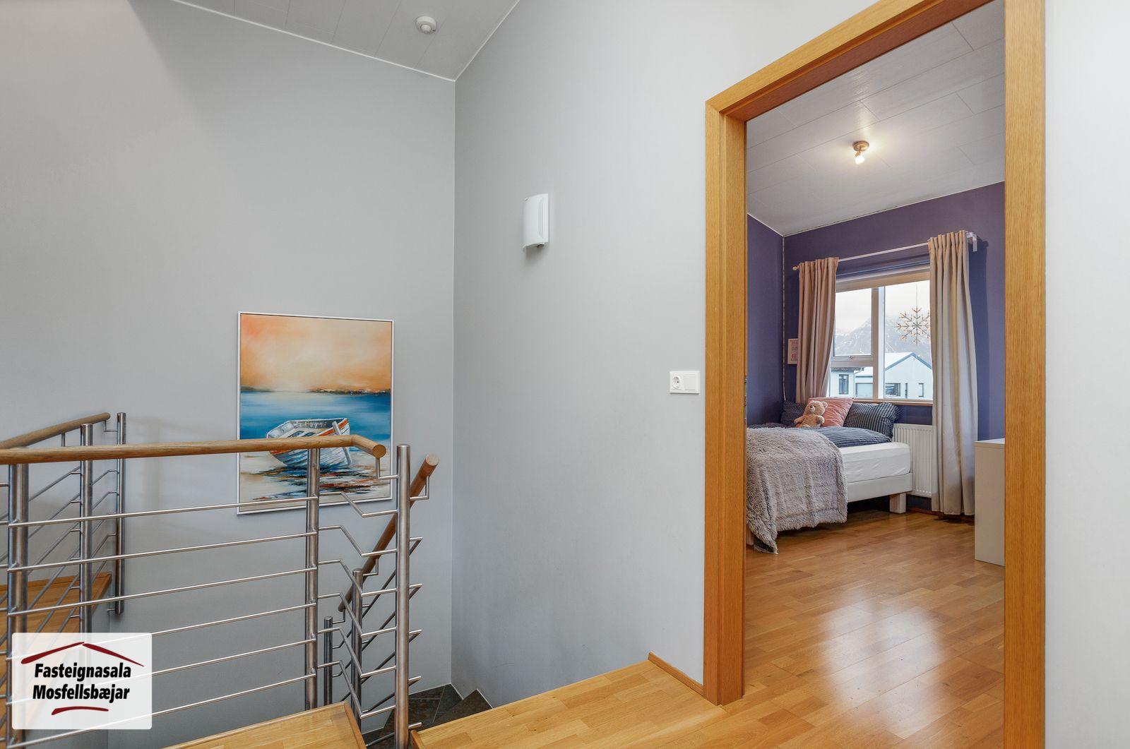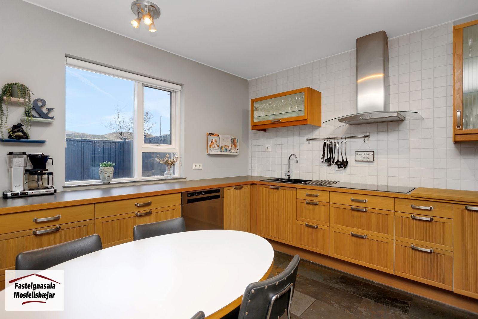 ** Opið hús þriðjudaginn frá kl. 16:30 til 17:00 - Theodór Emil Karlsson, löggiltur fasteignasali - teddi@fastmos.is eða 690-8040 - Svanþór Einarsson, löggiltur fasteignasali - svanthor@fastmos.is eða 698-8555 - Steingrímur Benediktsson, löggiltur fasteignasali - steingrimur@fastmos.is eða 862-9416 **Fasteignasala Mosfellsbæjar kynnir: Fallegt og vel skipulagt 165,5 m2 4-5 berbergja raðhús á tveimur hæðum með innbyggðum bílskúr við Tröllateig 31 í Mosfellsbæ. Eignin er skráð 165,5 m2, þar af raðhús 139,5 m2 og bílskúr 26,0 m2. Eignin skiptist í: Neðri hæð: Forstofa, gestasalerni, gangur, geymsla, eldhús, stofa/borðstofa og bílskúr. Efri hæð: þrjú svefnherbergi, baðherbergi, þvottahús og sjónvarpshol sem hægt er að breyta í svefnherbergi. Stór timburverönd með heitum potti og svalir í suðurátt. Hellulagt upphitað bílaplan. Góð staðsetning miðsvæðis í Mosfellsbæ. Stutt í skóla, íþróttasvæði, verslun, heilsugæslu og alla helstu þjónustu.Smelltu hér til að fá söluyfirlit sent strax.Nánari lýsing:Neðri hæð:Forstofa er með flísum á gólfi. Úr forstofu er innangengt í bílskúr.