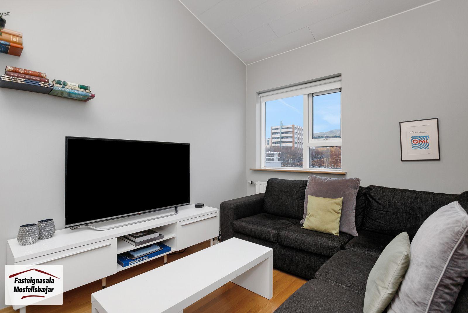 Sjónvarpshol er opið við gang og með parketi á gólfi. Á teikningum er er rýmið svefnherbergi og því möguleiki á að bæta við fjórða herberginu.