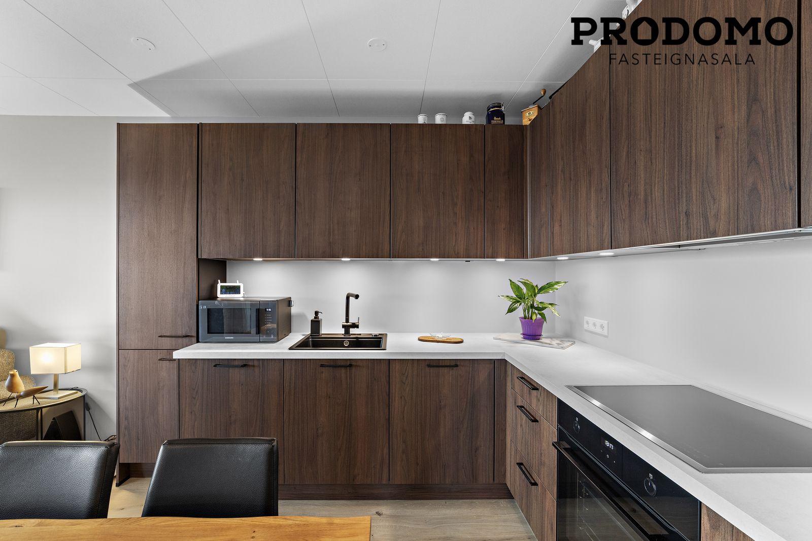 Vel skipulögð og stílhrein íbúð með sérsmíðuðum innréttingum frá Nobila og fataskápum frá GKS. Alrými íbúðinnar er bjart, þar er stofa og eldhús í opnu rými. Gólfhiti er í eigninni. Sérmerkt bílastæði, búið er að leggja fyrir rafhleðslu auk þess sem tvær hleðslustöðvar eru uppsettar við húsið. Nánari lýsing:Íbúðin skiptist í anddyri, stofu og eldhús í opnu rými, þrjú svefnherbergi og geymslu.