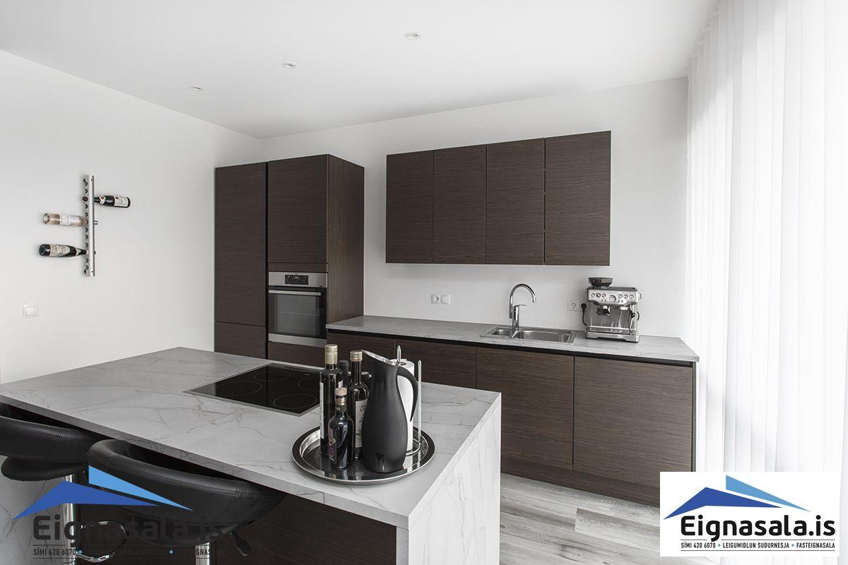 Eignasala.is kynnir Leirdalur 17, 260 Reykjanesbæ Glæsileg 4. herbergja neðri hæð með bílskúr í nýlegu 2 íbúða húsi í Dalshverfi innri Njarðvík, ATH skipti möguleg á minni eign. Birt stærð eignar er 139,5m2, þar af er íbúð skráð 109,5m2 og bílskúr 30 m2. Frágangur utanhúss Húsið er einangrað að utan með 125mm steinull og klætt að utan með vönduðum flísum frá Álfaborg. Allir gluggar, útidyrahurðir og svalahurðir eru úr timbri og koma frá Gluggasmiðjunni. Tvöfalt einangrunargler er í gluggunum og er 12mm loftbil á milli glerjanna. Þakið er skilgreint einhalla og klætt með timbri og tvöfalt lag af tjörupappa brætt ofan á þakvirkið. Þakeinangrun er 200mm steinull á milli þaksperra. Utandyra er vönduð útilýsing auk rafmagnstengils. Lóð er fullfrágengin með hitalögn í gönguleið. Handrið eru úr hertu öryggisgleri. Tvö bílastæði á lóð fylgja eigninni. Frágangur innanhúss Innveggir eru ýmist steinsteyptir eða hlaðnir með 10cm milliveggjastein. Sérsmíðaðar innréttingar eru á eldhúsi, baði og þvottahúsi sem og fataskápar og eru innréttingarnar úr reyktri eik frá Ormsson/HTH og fataskápar eru hvítir frá Ormsson/HTH. Innihurðar eru sprautulakkaðar hvítar og koma frá Birgisson. Eldhústæki sem eru bökunarofn og helluborð eru af gerðinni AEG frá Ormsson, uppþvottavél og ísskápur fylgja Hiti er í öllum gólfum eigna og eru votrými flísalögð með stórum 60x60 cm flísum frá Álfaborg og meginrými með 12 mm harðparketi frá Byko. Baðveggir eru flísalagðir að hluta með sömu flísum. Hreinlætistæki eru frá Laufen og blöndunartæki frá Grohe. Í öllum eignum er sturta með hitastýrðu blöndunartæki, vegghengt salerni og handlaug með einnar handar blöndunartækjum. Einnig er handklæðaofn á baði. Í eldhúsi er niðurfelldur stálvaskur og einnar handar blöndunartæki. Í þvottaherbergi er ræstivaskur ásamt tengi fyrir þvottavél og þurrkara. Lyfjaskápur, reykskynjari, slökkvitæki og eldvarnarteppi fylgir hverri eign. Raflagnir Rofar, tenglar og dósir eru settar upp í samræmi við raflagnateikningar. LED lýsing er bæði innan- og utandyrara. Síma og tölvutenglar eru í stofu, hjónaherbergi og barnaherbergjum. Nánari upplýsingar á skrifstofu Hafnargötu 90a í síma 420-6070 julli@eignasala.is og eignasala@eignasala.is Gjöld sem kaupandi þarf að standa straum af vegna kaupa á fasteign: 1. Stimpilgjald af kaupsamningi - 0,8% af heildarfasteignamati fyrir einstaklinga (0,4% ef um er að ræða fyrstu kaup) og 1,6% fyrir lögaðila. 2. Þinglýsingargjald af kaupsamningi, veðskuldabréfi, mögulegu veðleyfi o.fl. - kr. 2.700 af hverju skjali. 3. Lántökugjald lánastofnunar – mismunandi á milli lánastofnana. Nánari upplýsingar á heimasíðum lánastofnana. 4. Umsýslugjald til fasteignasölu, kr. 43.400 með vsk. Júlíus M. Steinþórsson 899-0555 Jóhannes Ellertsson 864-9677 Löggiltur fasteignasali Löggiltur fasteignasali