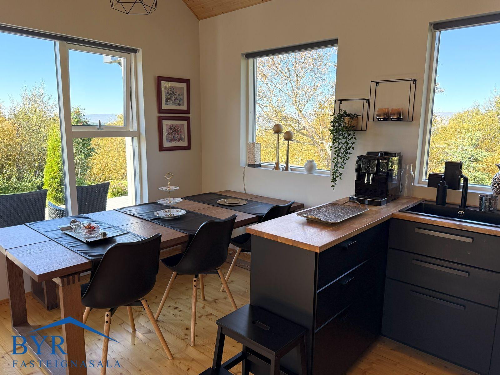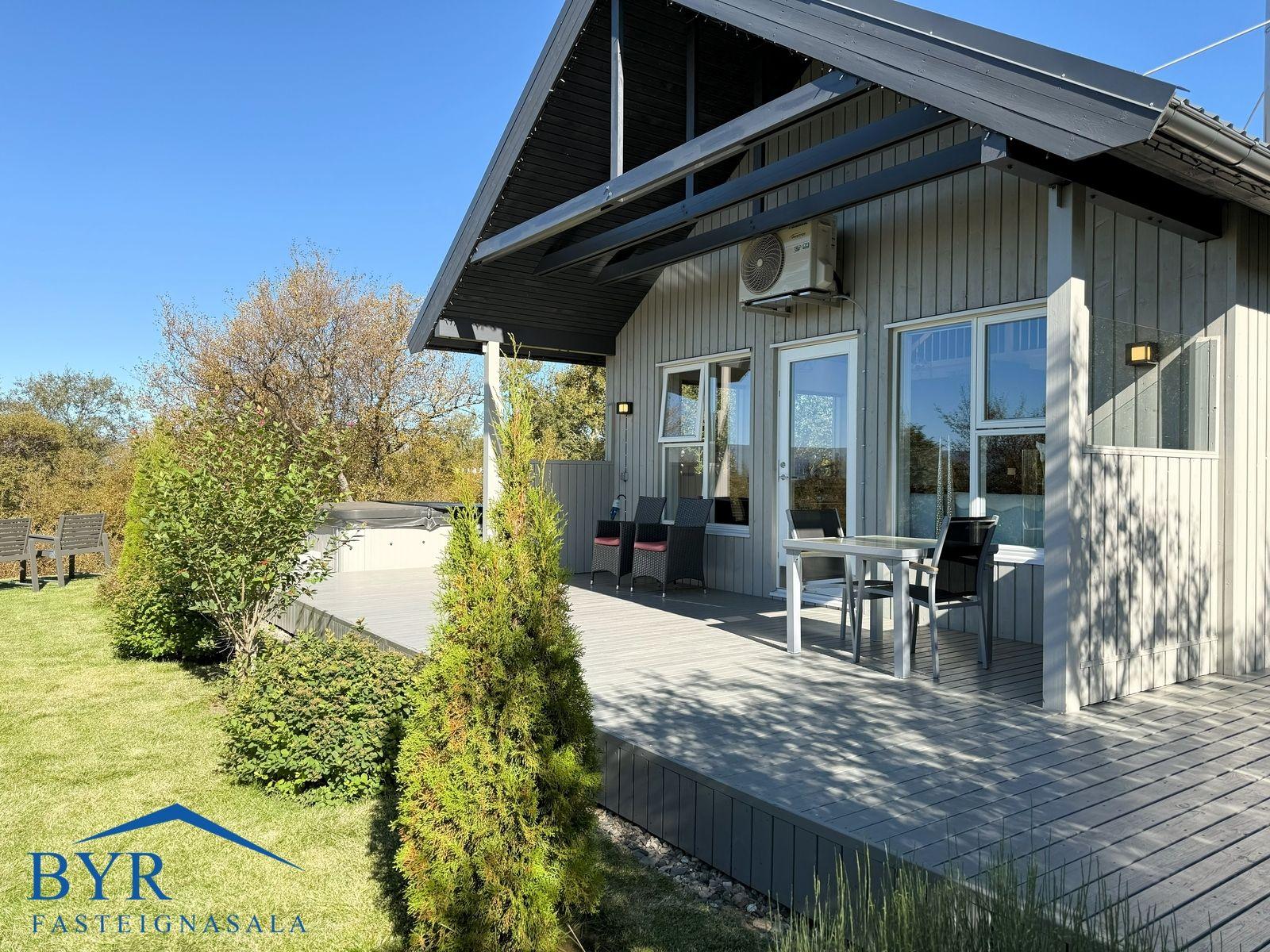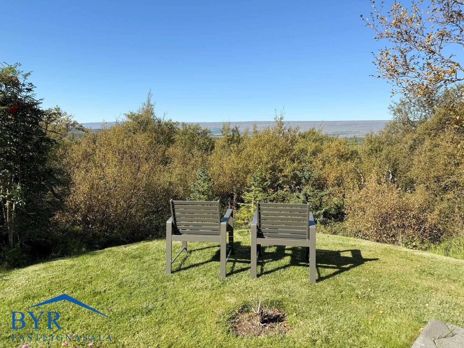 Nýlegt hús og gróin lóð, með útsýni til fjalla, eign sem vert er að skoða. Smellið hér fyrir staðsetningu.Húsið er timburhús á tveimur hæðum, birt stærð 74.1 m² samkvæmt skráningu HMS.