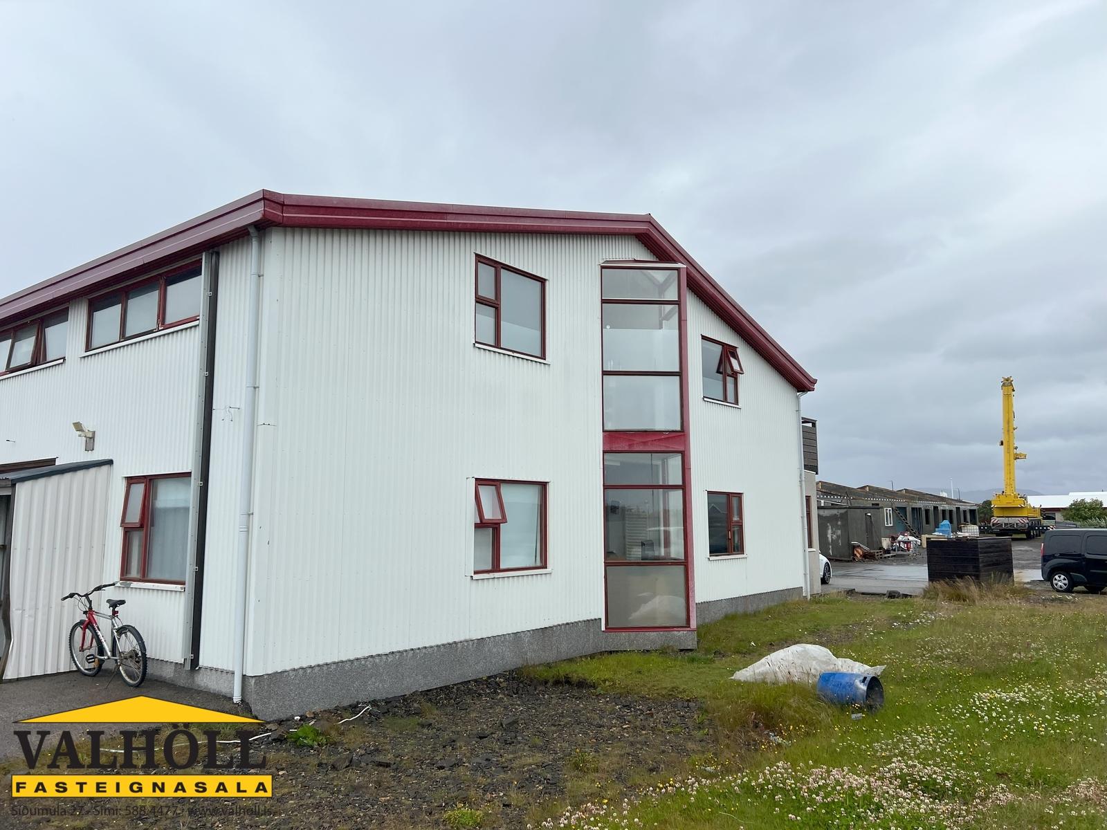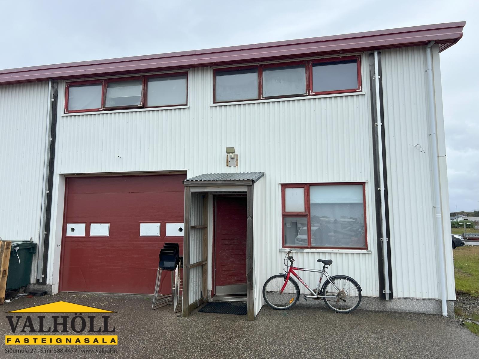 Geymslan um 30 fm er sér á neðri hæð með bílskúrshurð.
