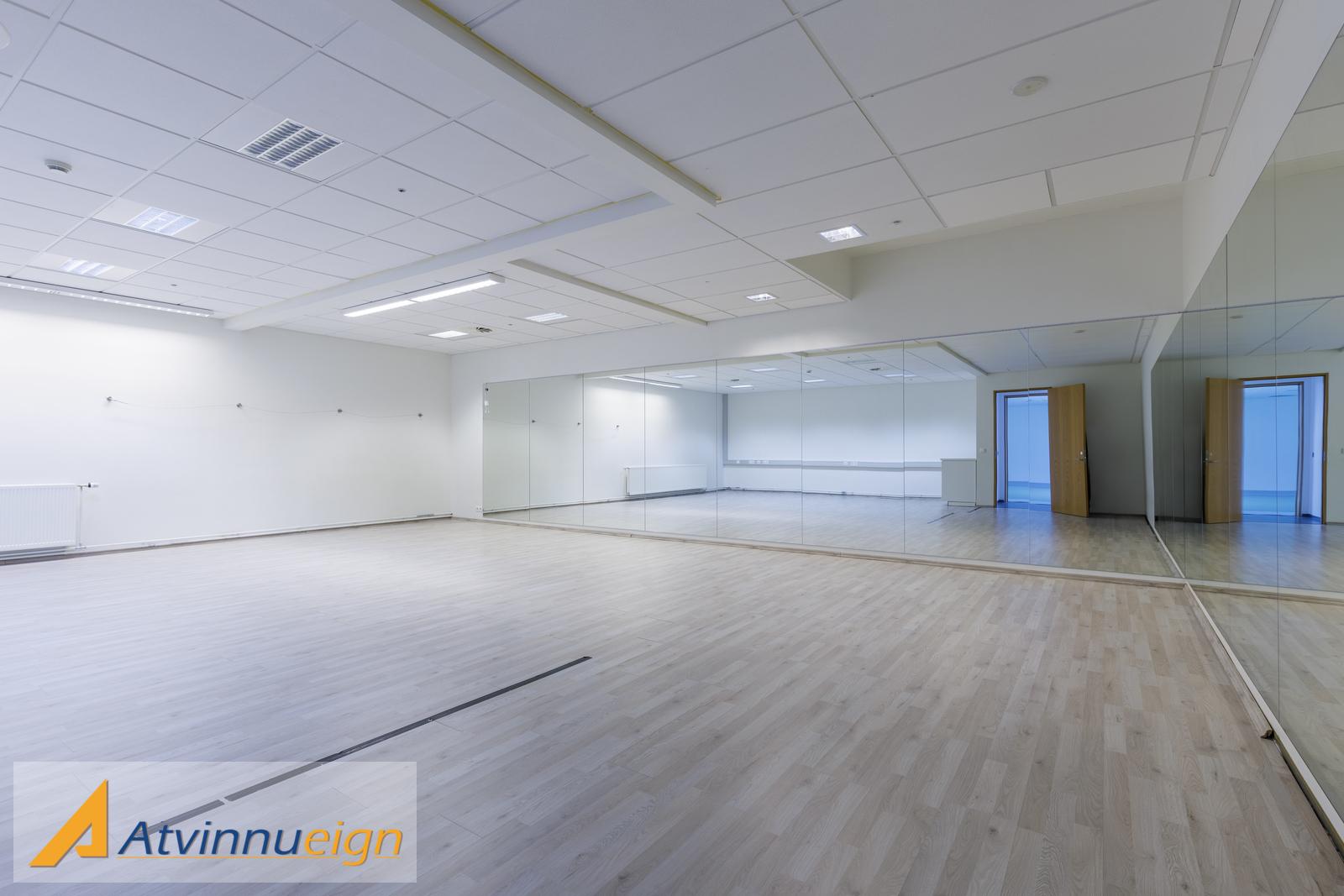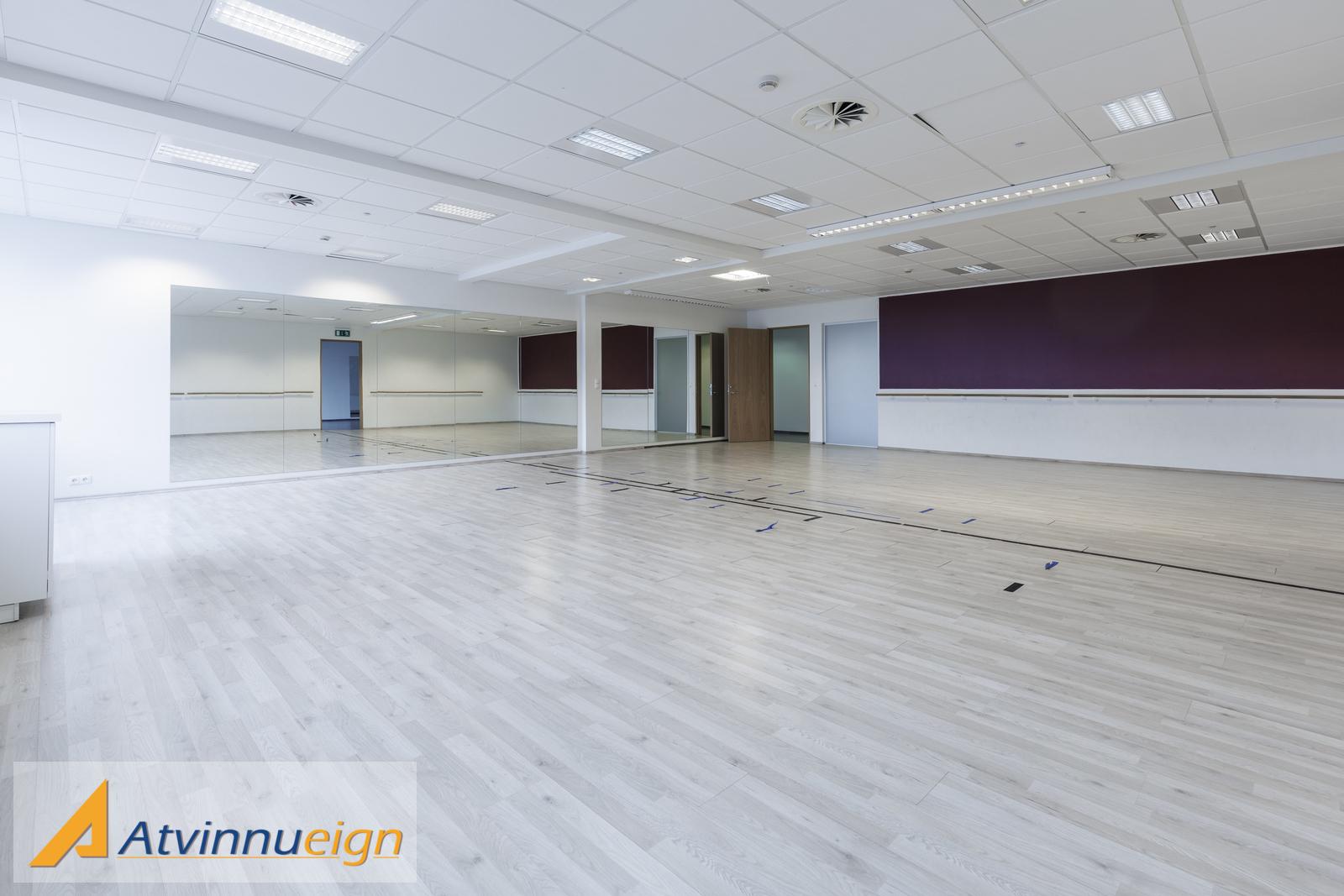 2. hæð sem er 961 fm sem skiptist í 7 sali, móttöku, skrifstofu, nokkur salerni, geymslu og tæknirými. Kerfisloft með lýsingu, parket og dúkur á gólfi. Svalir eru við móttöku og er hægt að ganga beint inn í húsnæðið þar af 2. hæð.