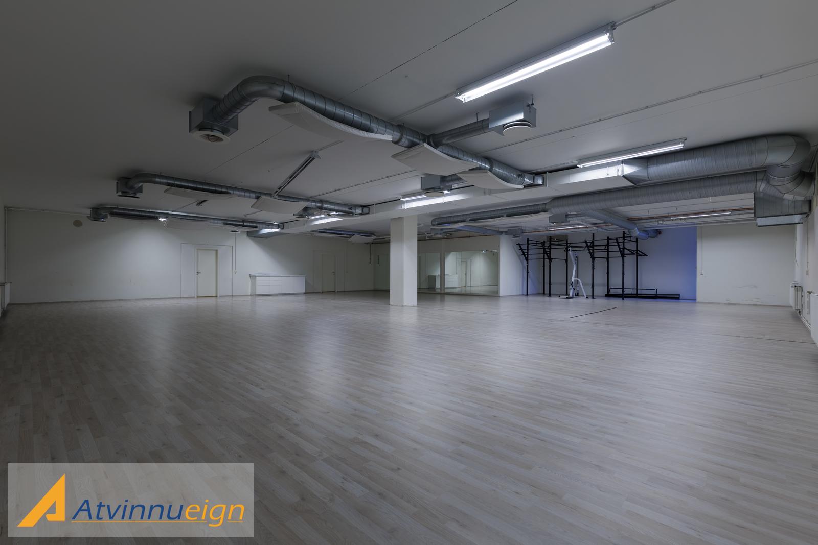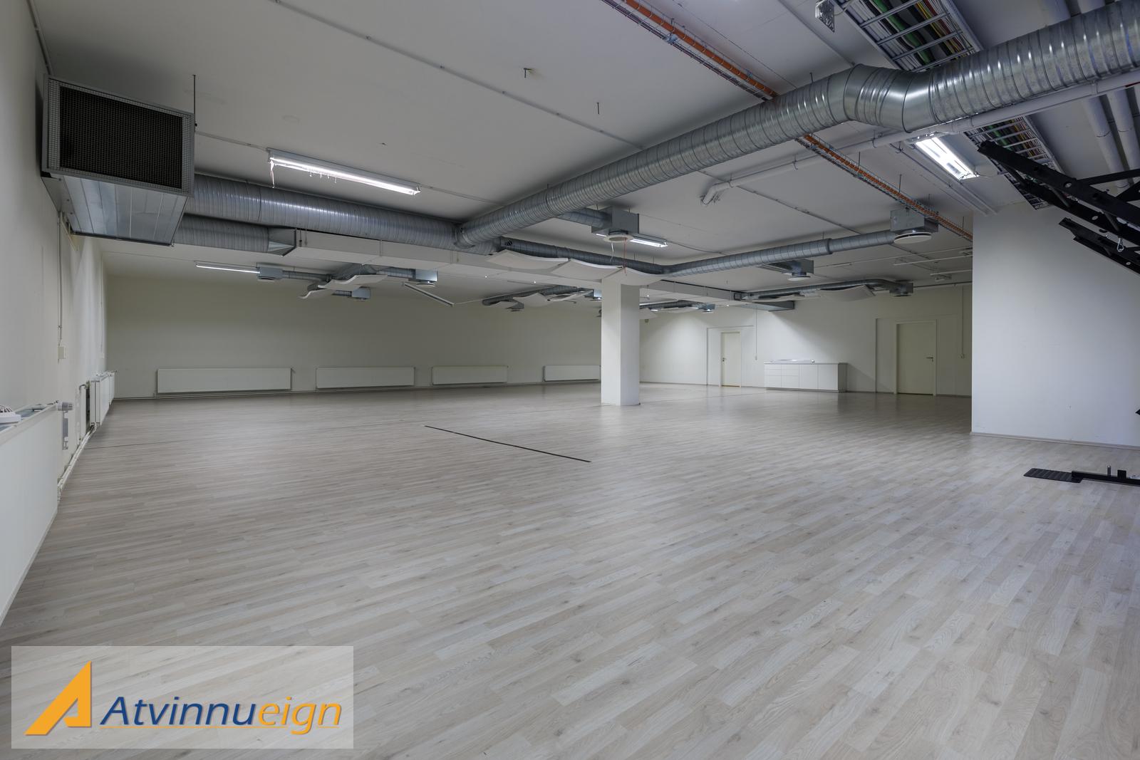 Nánari lýsing: 1. hæð sem er 363 fm er einn salur með parketi á gólfi. Lofthæð er um 3 metrar.