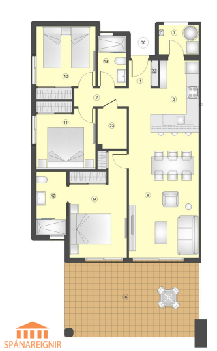 www.spanareignir.isKostnaður við kaupin: 10% IVA (spænskur söluskattur) af kaupverði eignarinnar. Auk þess má gera ráð fyrir ca. 3% kostnaði vegna stimpilgjalda og annars kostnaðar við kaupin, þ.e. samtals getur kostnaður vegna kaupa á fasteign á Spáni því farið upp í ca. 13%.