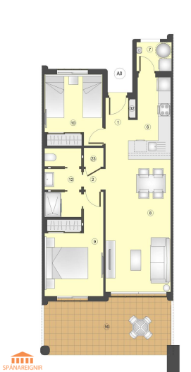 Karl Bernburg, viðskiptafærðingur, karl@spanareignir.is. GSM 777 4277.Nánari lýsing:Um er að ræða nýbyggð lítil fjölbýlishús með vel hönnuðum íbúðum og fallegum íbúðum í nútíma klassískum miðjarðarhafsstíl. Hægt er að velja íbúðir með tveimur eða þremur svefnherbergjum og einu eða tveimur baðherbergjum, góðri stofu/alrými og fallegu eldhúsi. Hægt er að velja íbúðir á jarðhæð, með sér garði eða á efri hæð og þá með svölum og stórum einka þaksvölum. Falleg hönnun og vandaðar innréttingar. Einstök sjávarsýn frá flestum íbúðum. Glæsileg sameign með 2 sundlaugum, upphitaðri sundlaug, 2 barnasundlaugum, jacuzzi, barnaleikvöllum göngustígum ofl. Frábær staðsetning við fallega strönd, verslanir og veitingastaði. Fallegir göngustígar meðfram ströndinni.