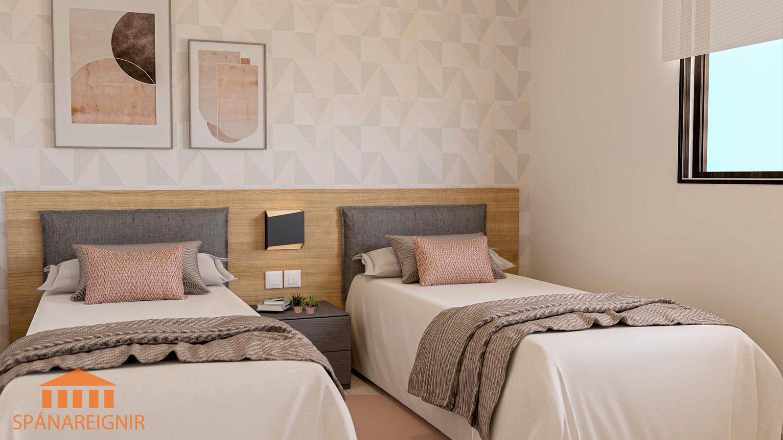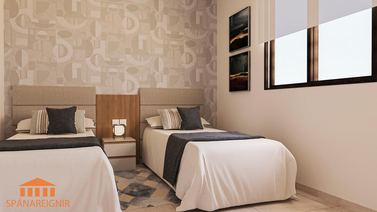 3ja herbergja íbúð (tvö svefnherbergi og eitt baðherbergi): frá 198.000 Evrum (ISK 28.700.000) + kostn.