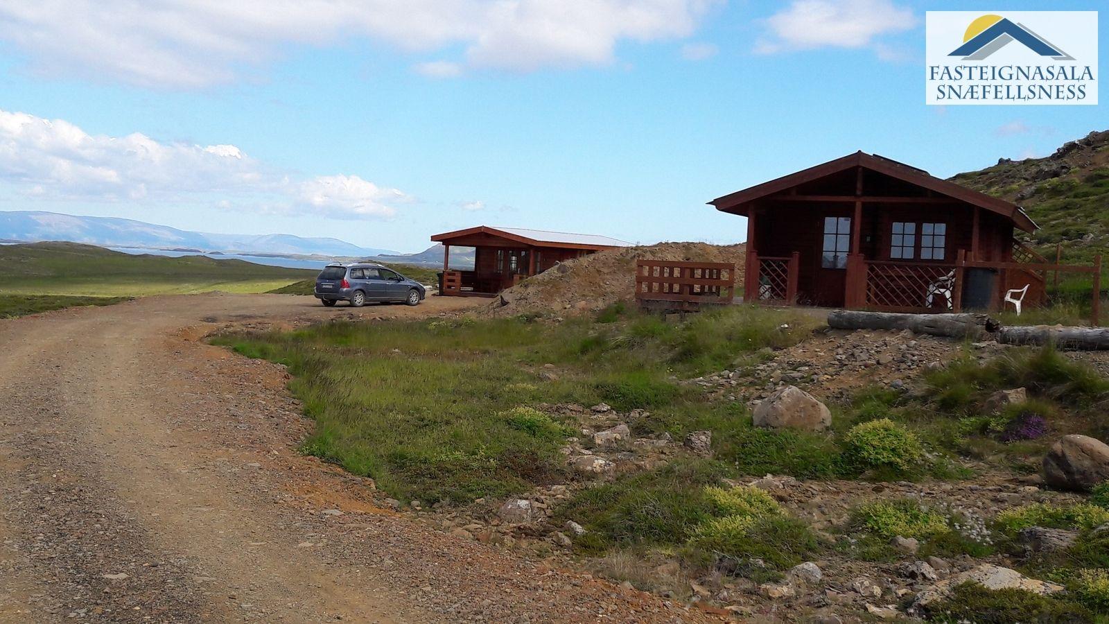 8,4 ha. lóð með þremur ca. 25 fm. sumarhúsum.