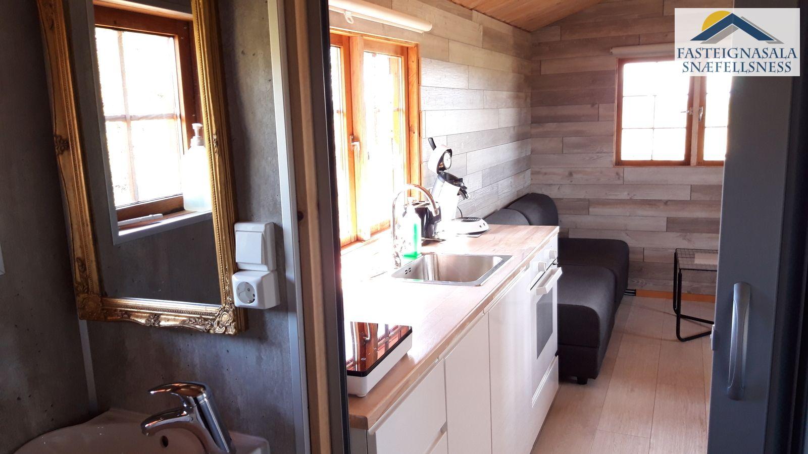 Húsin eru bjálkahús og var eitt byggt árið 2010 og tvö árið 2017.