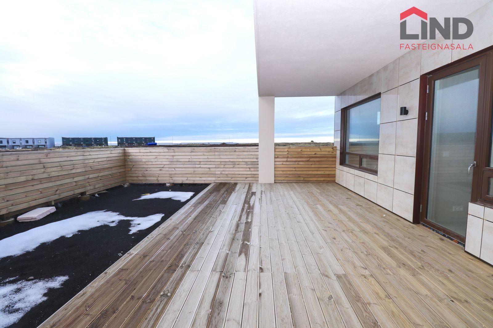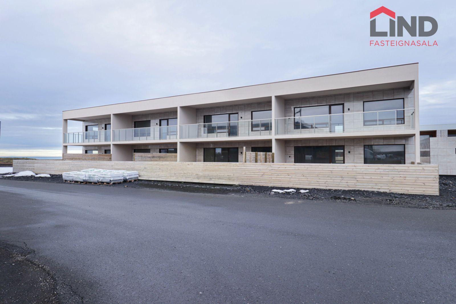 Um er að ræða átta fjögurra herbergja íbúðir í tveggja hæða fjöleignarhúsi með opnu stigahúsi. Fjórar íbúðir eru á hvorri hæð, allar með sérinngangi. Íbúðir á neðri hæð eru með rúmgóðum afgirtum sérafnotareiti og þær efri með svölum með glerhandriði, sem allar snúa til suðvesturs.