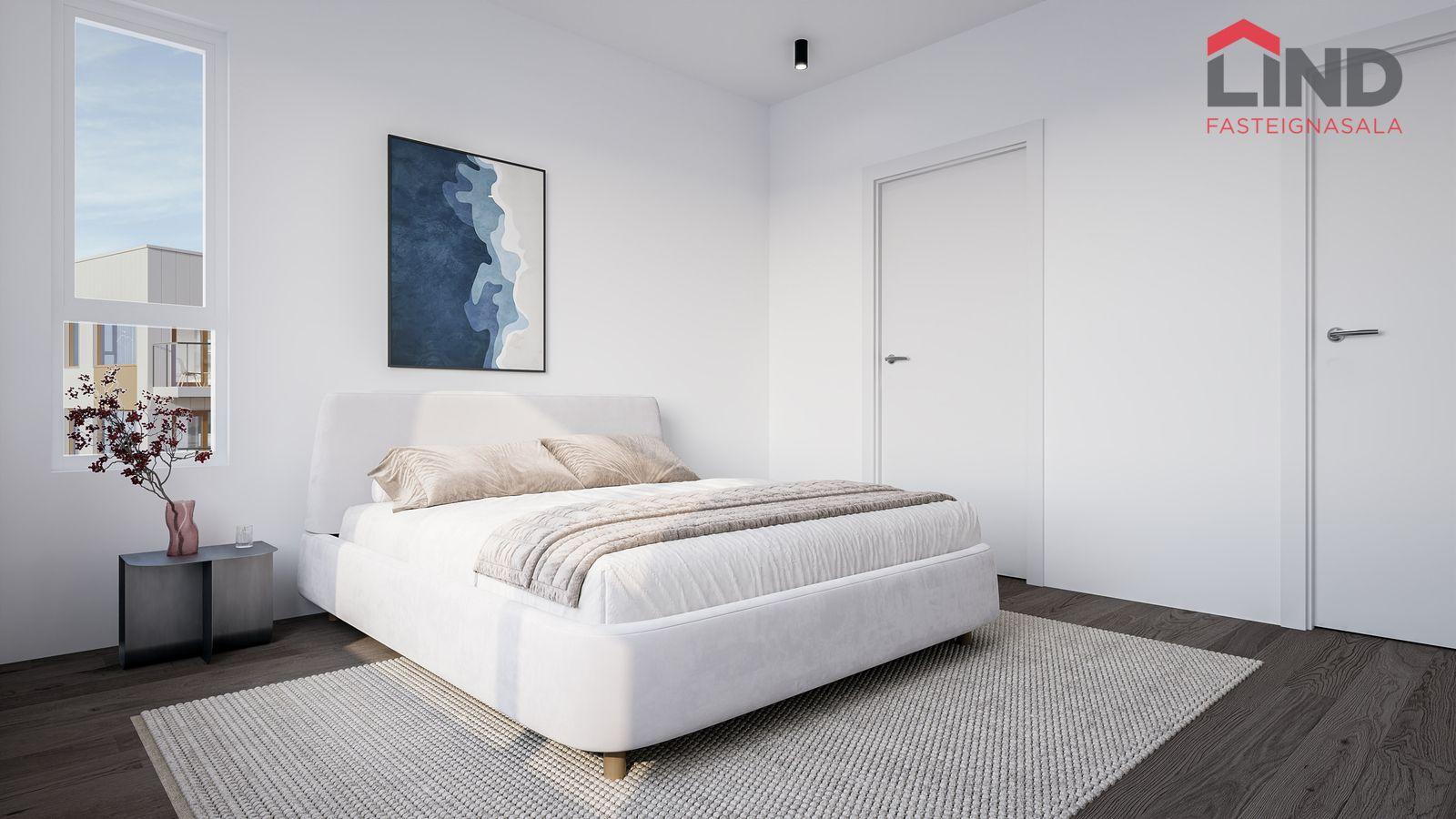 Nánari lýsing: Íbúðin skiptist í forstofu, eldhús í alrými með eyju sem er opið við stofu/borðstofu, 2 svefnherbergi (möguleiki á 3 svefnherberginu), 2 baðherbergi og þvottaherbergi. Útgengt á svalir frá stofu.