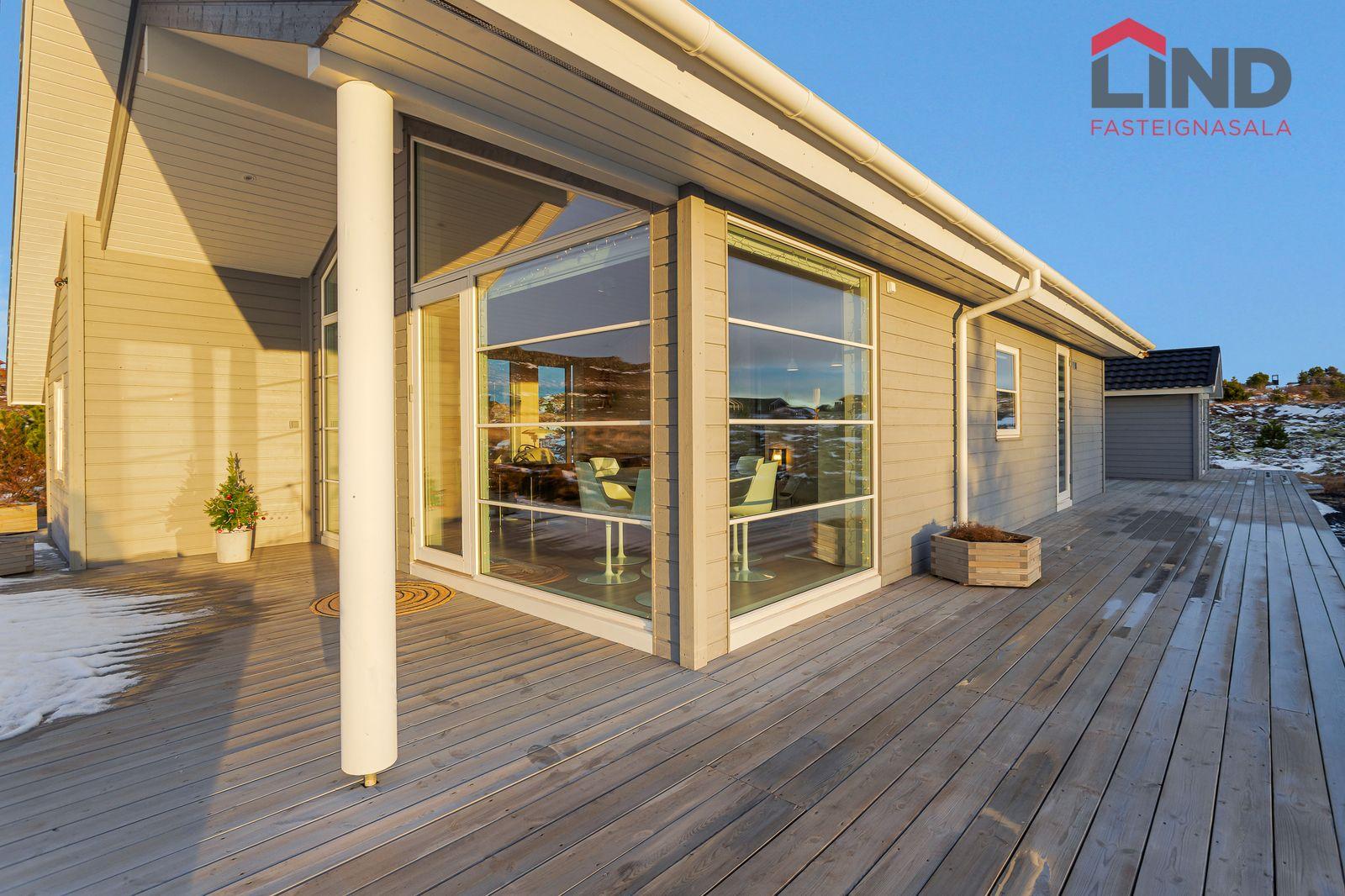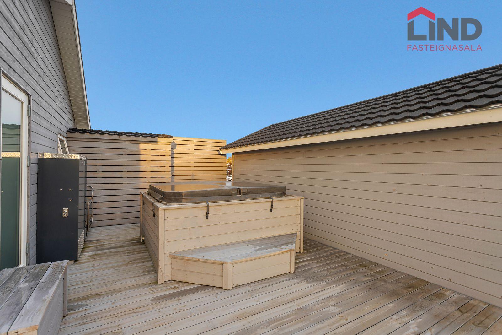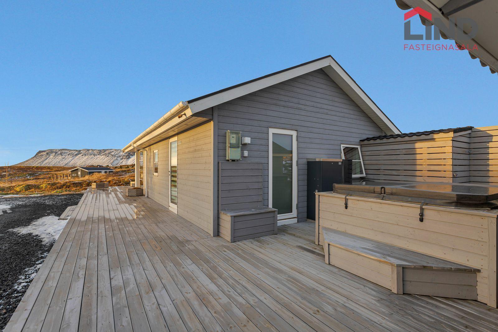 Húsið stendur á 5.300 m2 lóð með virkilega fallegu útsýni yfir ánna og næði frá öðrum sumarhúsum. Stór og mikil verönd nær hringinn í kringum bústaðinn með heitum potti sem er með útgengi úr baðherbergi.