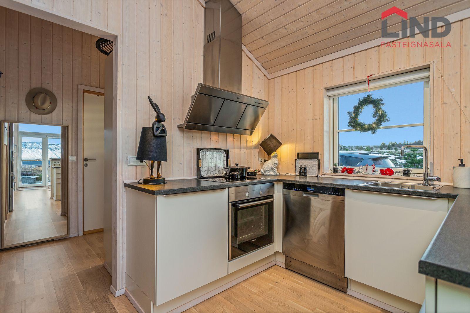 Heildareignin er 89,5 fm. að stærð og skiptist í 70,6 m2 aðalhús og 20,1 m2 gestahús sem er fullbúið með innréttingu og eldhúsaðstöðu.