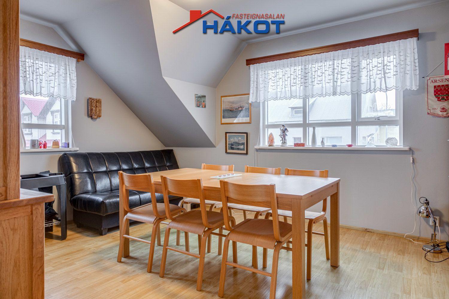 ANNAÐ: Stigahús málað og sett teppi (2015). Gert við sprungur aftan á húsinu (2022). Sameiginleg hitaveita með neðri hæðinni. Útihurð plast. Íbúð endurnýjuð að hluta 2010, gólfefni, innihurðar og baðherbergi. Stór innrétting á baðherbergi. Útisýni úr á Krókalónið.