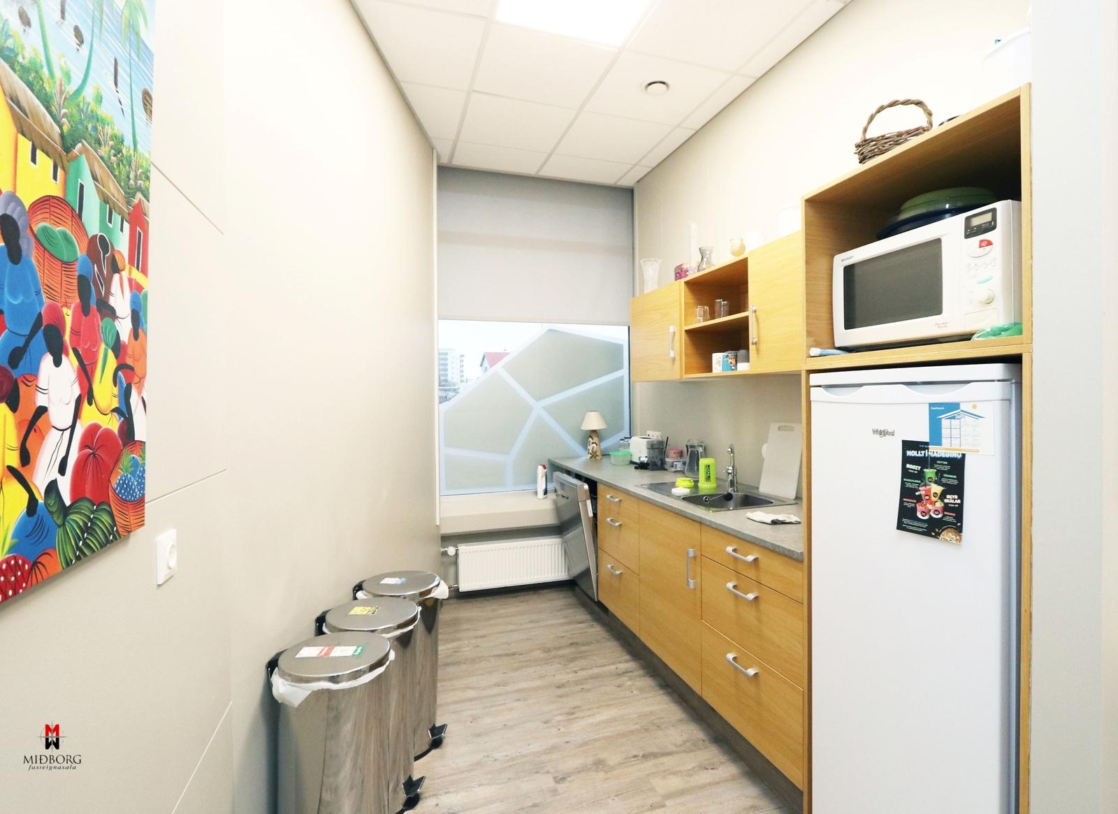 Eignin er að hluta til í útleigu í dag, en 3 skrifstofuherbergi eru laus, ca. 20 fm., 16. fm. og 12 fm.