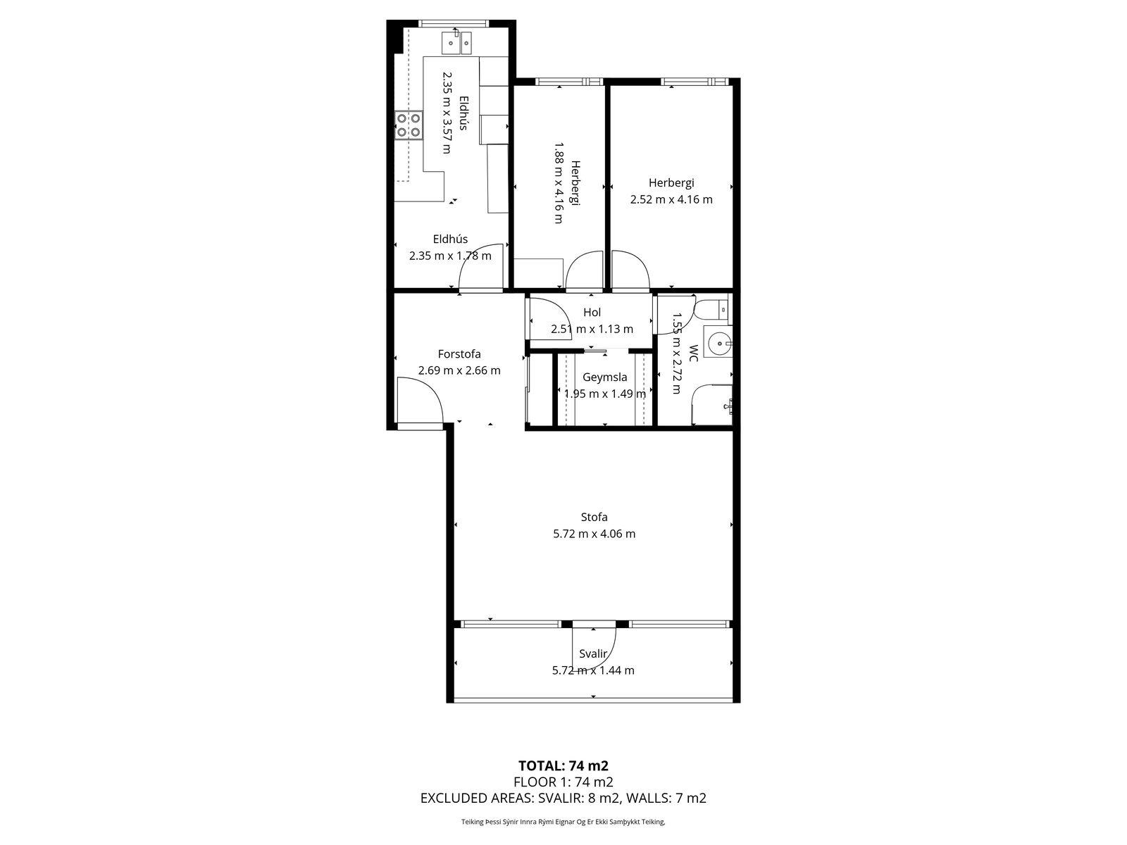 Svalir: Svalir sem eru 7,2 fermetrar og snúa til vesturs.