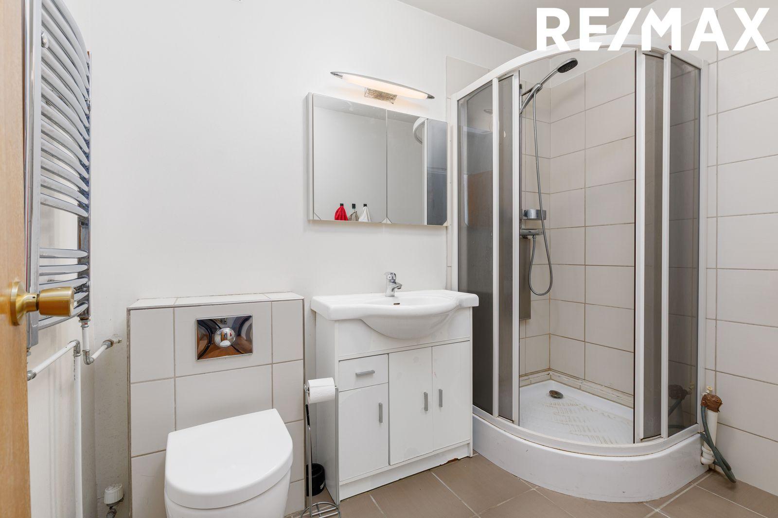 Baðherbergi: Flísar á gólfi og á veggjum við sturtuklefa. Upphengt salerni. Hvít innrétting með handlaug. Handklæðaofn. Tengi fyrir þvottavél og þurrkara í baðherbergi.