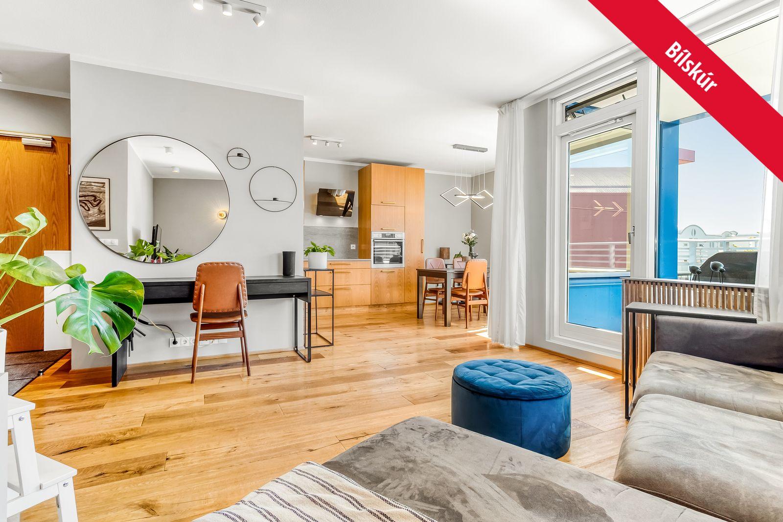 Bogi Molby Pétursson fasteignasali og Lind fasteignasala kynna til sölu: Fallega bjarta og vel skipulagða þriggja herbergja útsýnisíbúð með bílskúr.