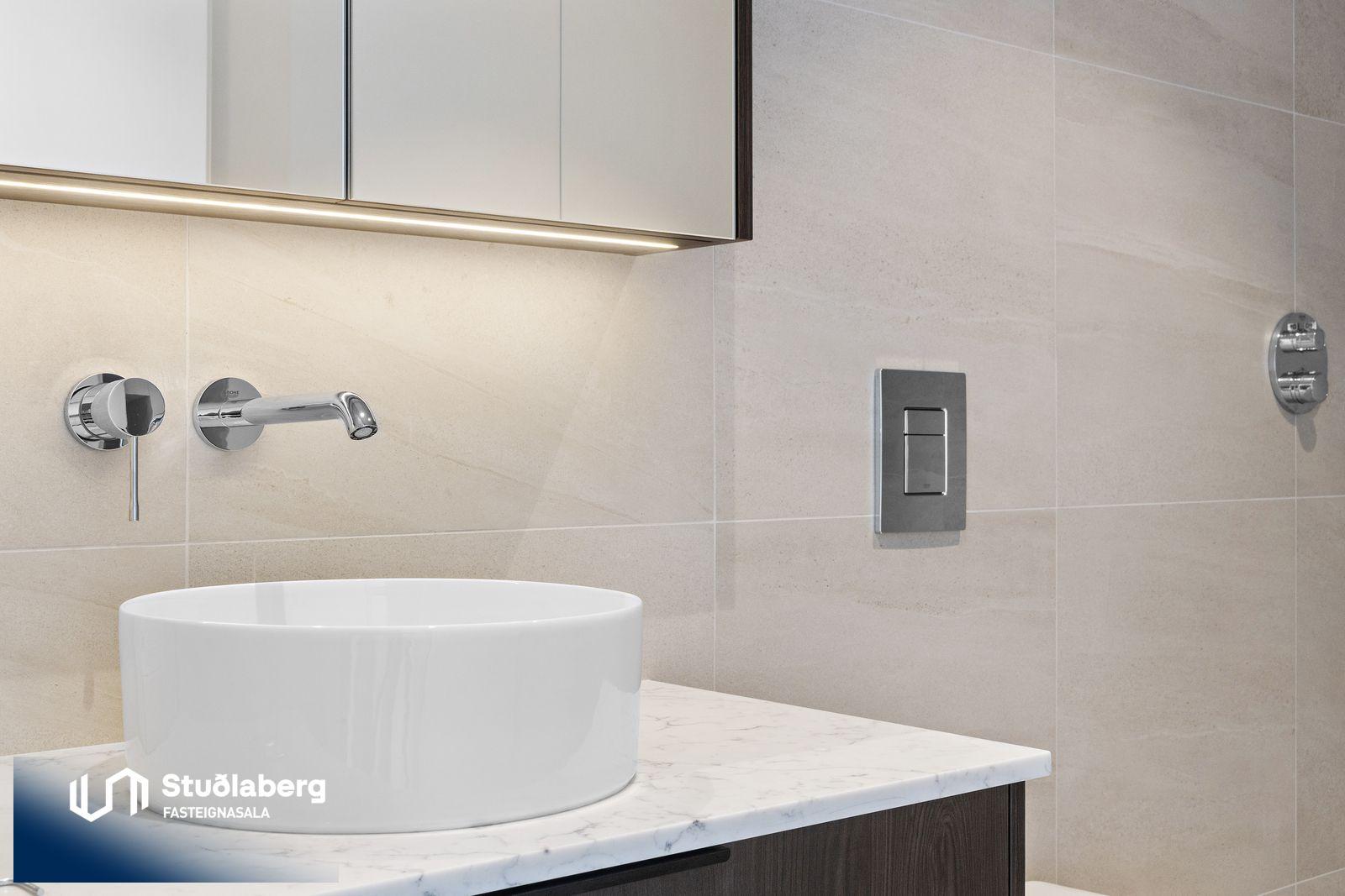 Stuðlaberg fasteignasala kynnir glæsilegar íbúðir við sjávarsíðuna í Reykjanesbæ að Pósthússtræti 9. Um er að ræða íbúðir sem mikið er lagt í er horft er til gæða íbúða í nýbyggingum í dag og má þar m.a nefna aukin lofthæð, þrefalt gler, loftskipti kerfi, sérstaklega vönduð sameign og stæði í bílakjallara fyrir hluta íbúða. Eigninar afhendast fullbúnar án megin gólfefna en flísar eru frá Parka í votrýmum. Virkilega vandaðar sérsmíðaðar innréttingar frá Parka með Mistery White kvartsstein frá Granítsmiðjunni. Hágæða Siemens heimilstæki frá Smith og Norland, hluti íbúða hefur span helluborð með gufugleypi. Vönduð blöndunartæki frá Grohe og eru þau innbyggð á baðherbergjum. Gólfhiti með Danfoss stýringum.