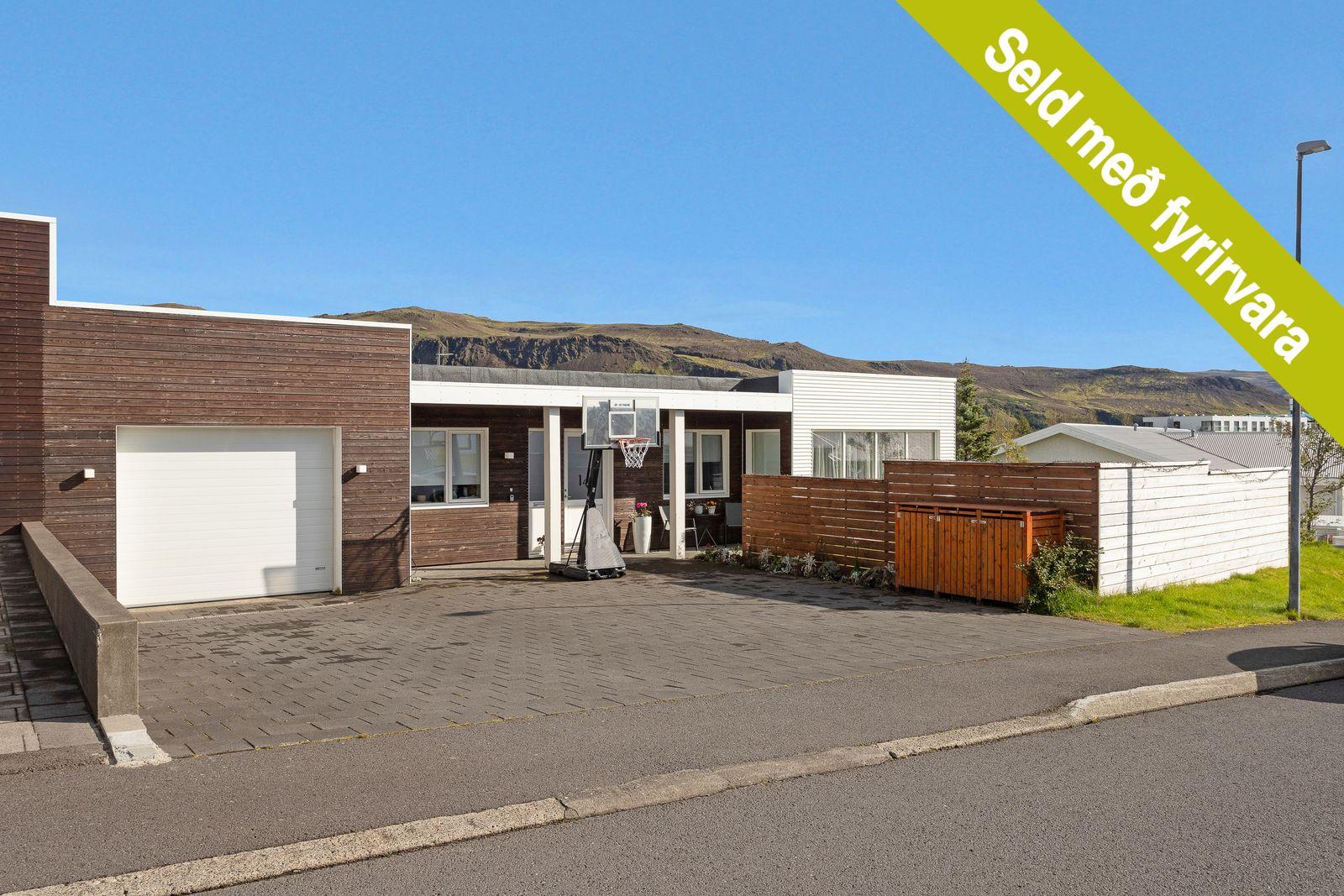 Um er að ræða vandað, steinsteypt parhús á góðum stað við rólega botnlangagötu. Útveggir eru einangraðir að utan, klæddir hvítu bárustáli og timburklæðningu. Þak hússins er flatt, plata er steypt og einangrun að ofan og þétting er dúkur með malarfargi. Gluggar og hurðir eru úr viðhaldsfríu plasti, hvítt að lit. Lofthæð íbúða er 2,7m og bílskúra 3,2 m.
