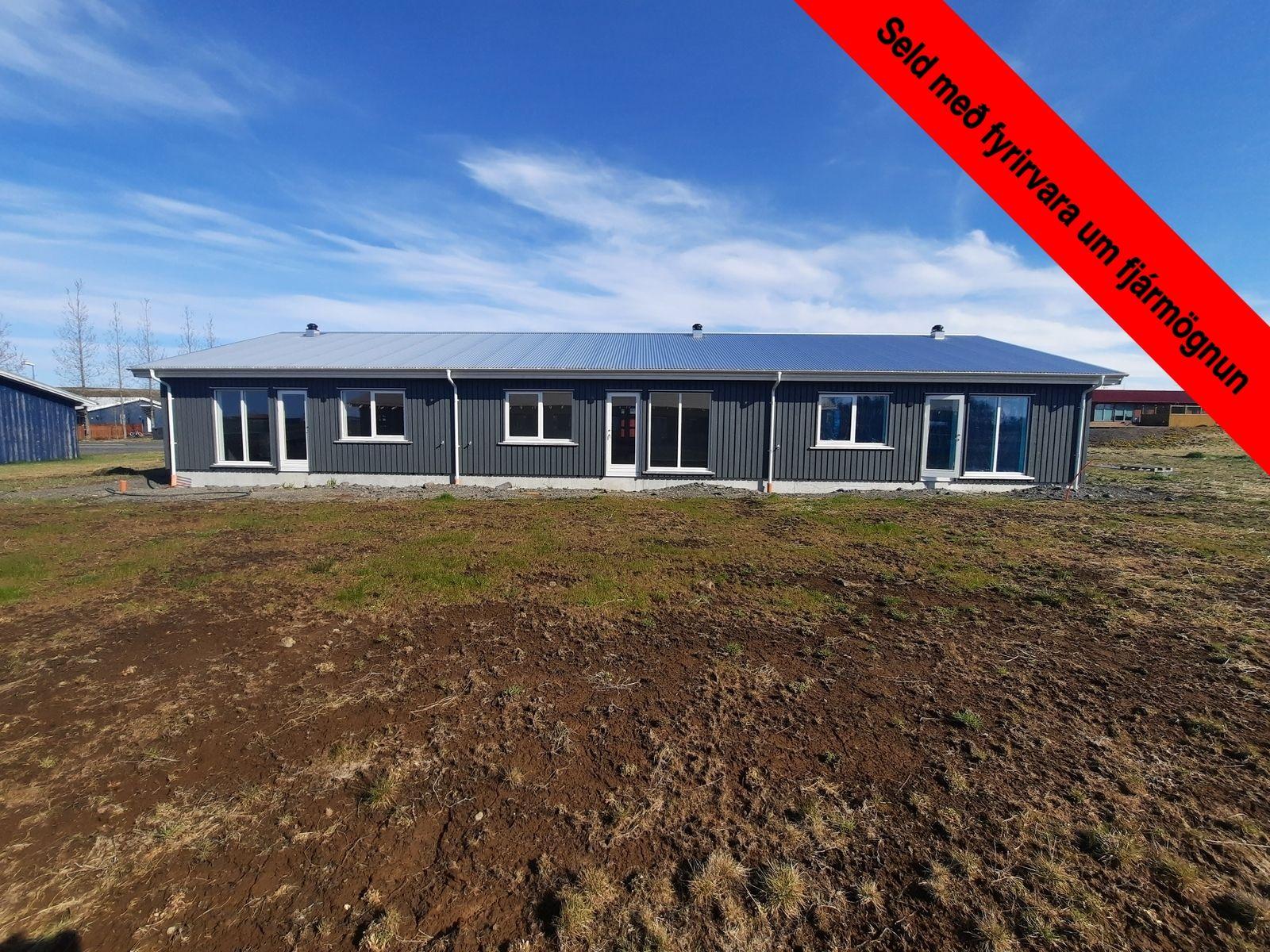 Loftur Erlingsson löggiltur fasteignasali s. 896 9565 og Hús fasteignasala kynna í einkasölu: Nýtt fullbúið og vandað þriggja herbergja, 84,4fm endaraðhús í Árnesi, Skeiða- og Gnúpverjahreppi. Forstofa er flísalögð og gott forstofu herbergi á hægri hönd með fataskáp. Dyr úr forstofu inn í íbúðina. Þar til vinstri rúmgott hjónaherbergi með stórum fataskápum og geymsla við hlið þess. Baðherbergið á hægri hönd með flísalögðu gólfi og veggjum sturtu. Upphengt klósett, handlaug á skáp og speglaskápur yfir henni, og gert ráð fyrir þvottavél og þurrkara. Opið og bjart sameiginlegt rými stofu og eldhúss með hurð út í garð og þar hugsað fyrir lögnum fyrir heitan pott. Eldhúsinnréttingin frá IKEA, grá að lit, vönduð eldunartæki frá Electrolux, gott vinnu- og skápapláss. Harðparket á öllum gólfum nema votrýmum, flísar þar. Lóðin verður grófjöfnuð og perlumöl í bílaplani. Íbúðin afhendist með lokaúttekt. Í Árnesi er grunnskóli sveitarfélagsins og félagsheimilið Árnes, Neslaug, kjötvinnsla Korngríss og N1 bensínstöð með nauðsynjaverslun og góðu grilli. Þá er veglegt íþróttahús í byggingu. Stutt er í Þjórsárdalinn með öllum hans náttúruperlum, og 30mín akstur á Selfoss hvar finna má alla helstu þjónustu.