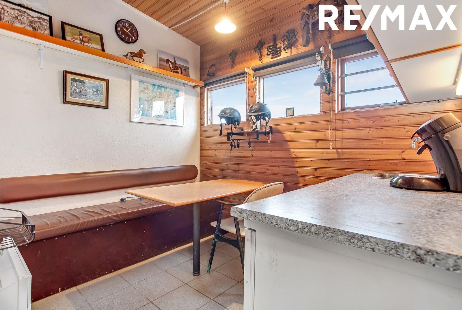 Kaffistofa: Kaffistofa er snyrtileg og með góðri innréttingu. Gluggi í kaffistofu er í átt að gerði.